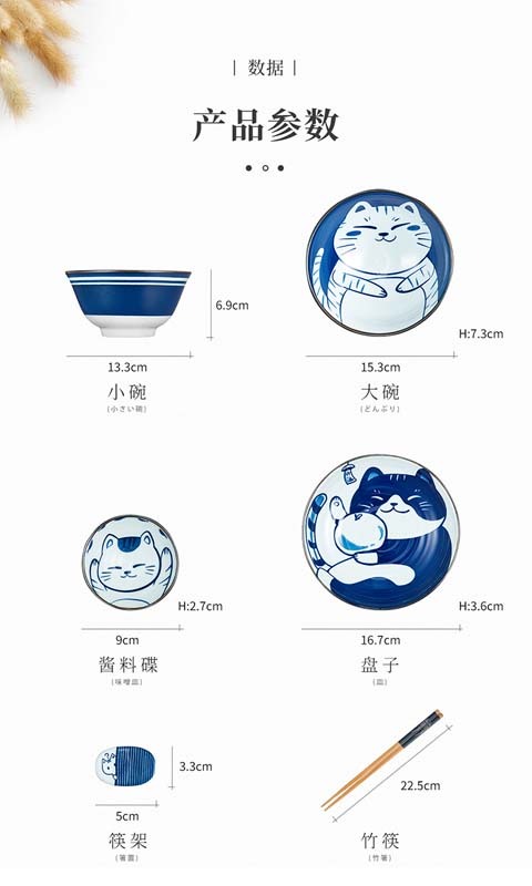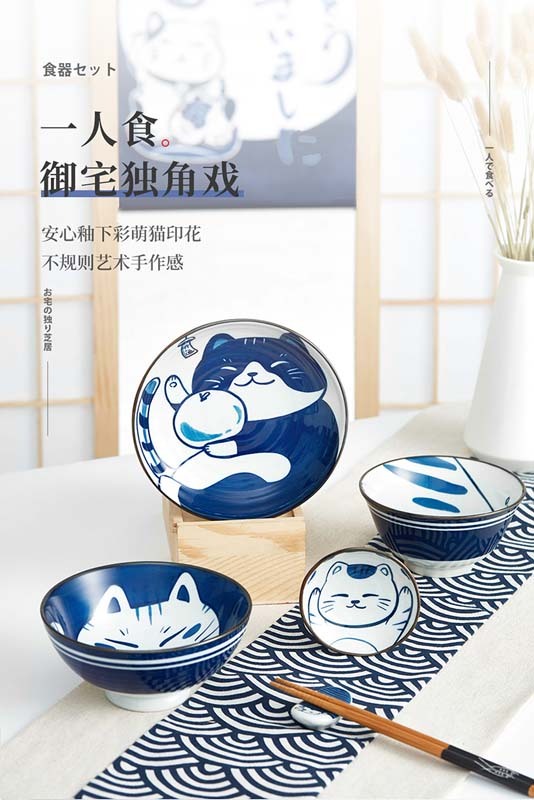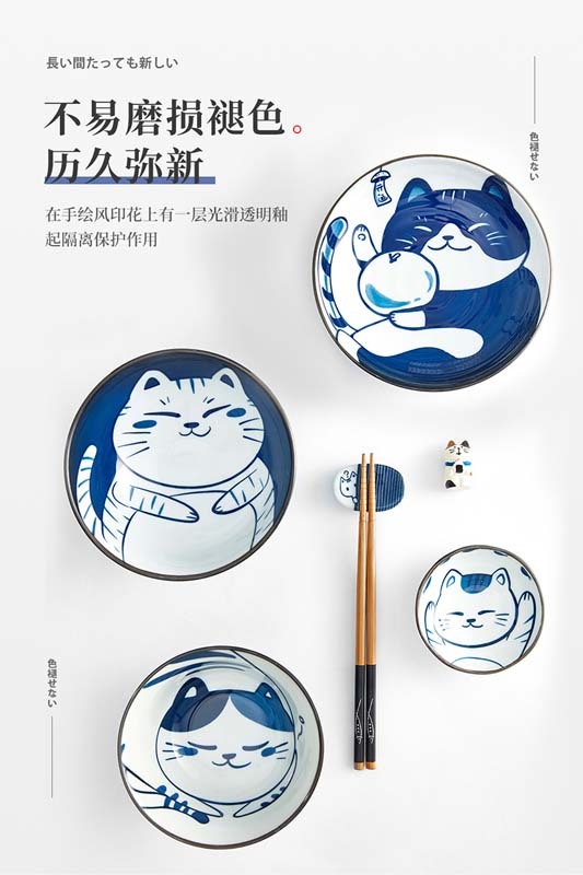 御宅招财猫陶瓷餐具六件套