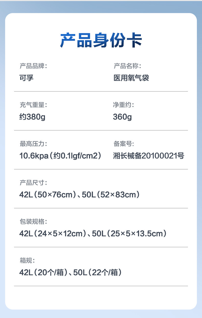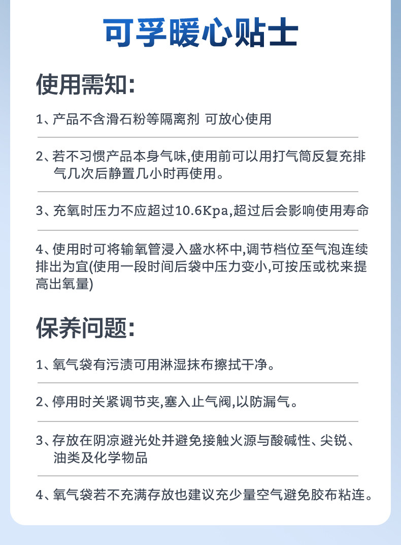 可孚医用氧气袋便携式瓶吸入器孕妇专用家用老人急救大容量气罐枕