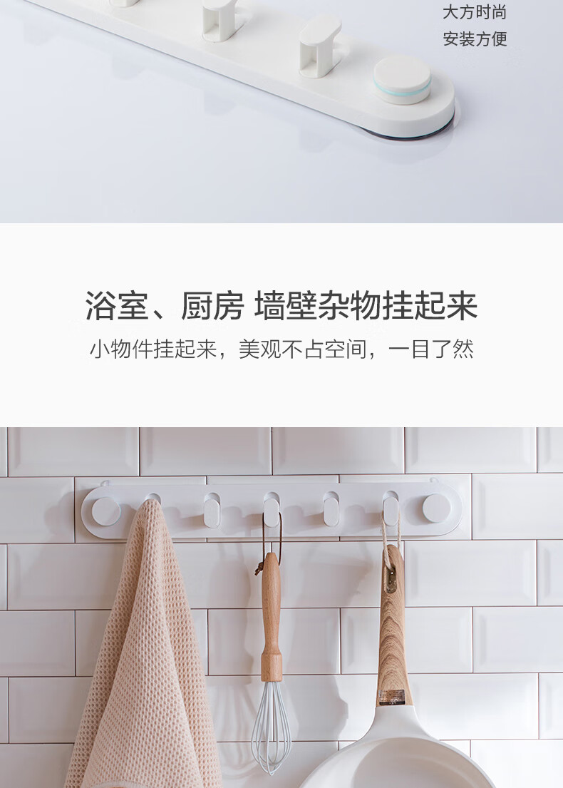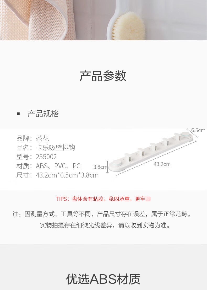 茶花 卡乐免打孔吸壁排钩 255002