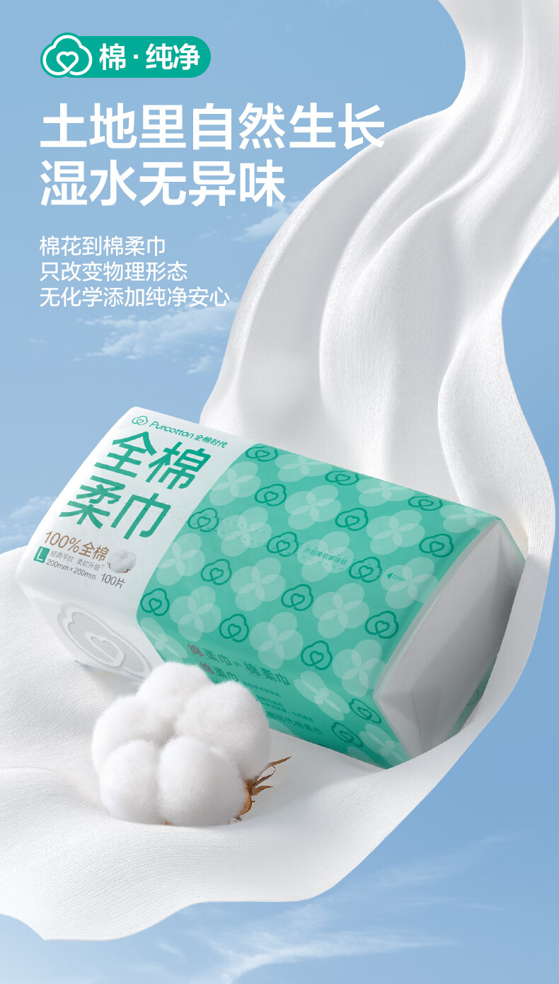 全棉时代经典L码爆款棉柔巾100片*3包