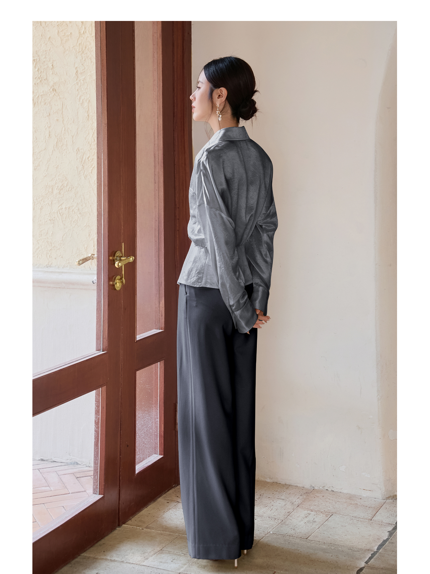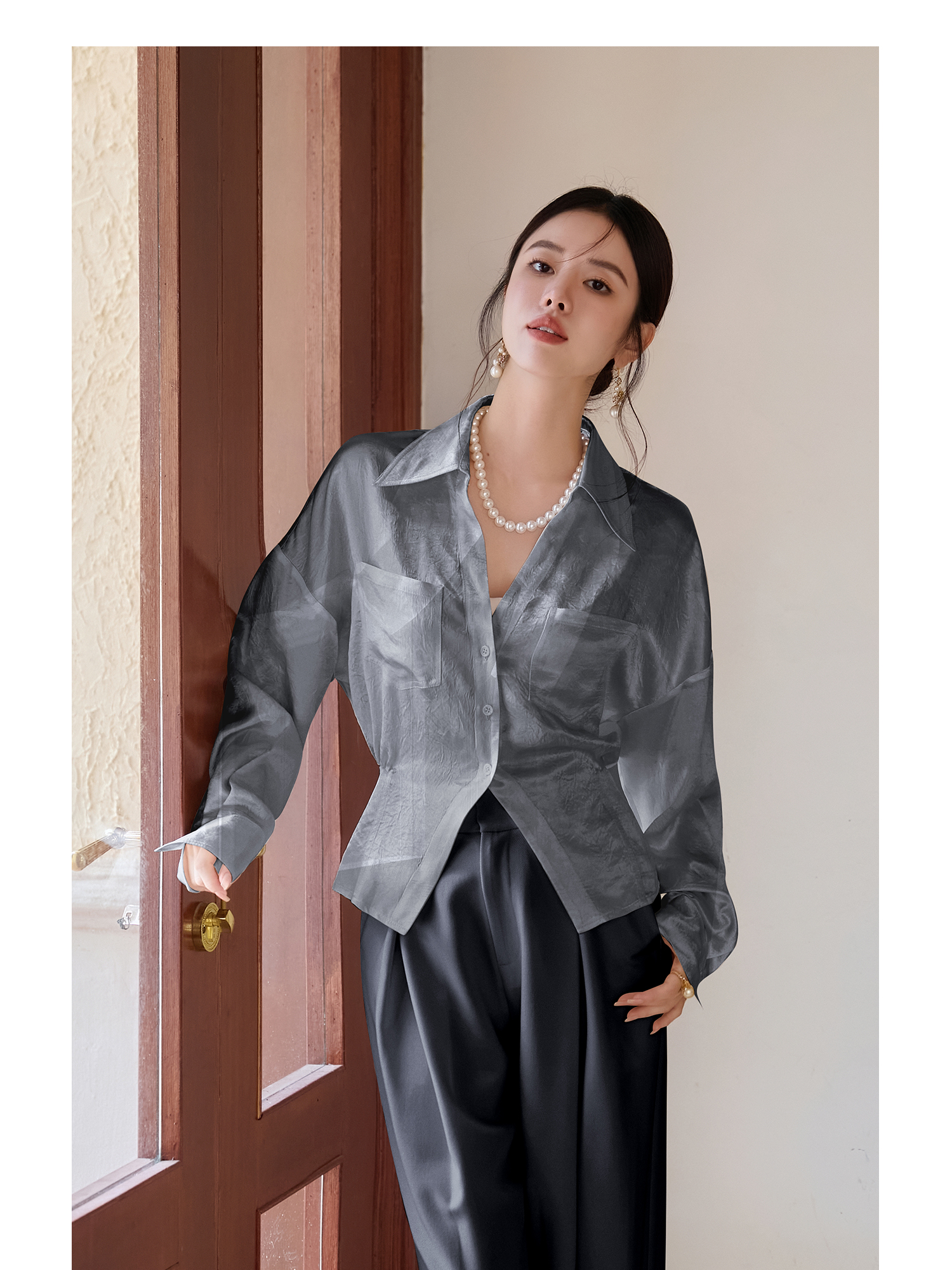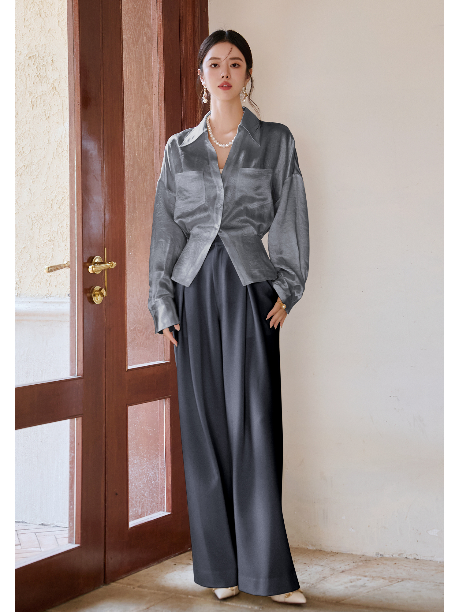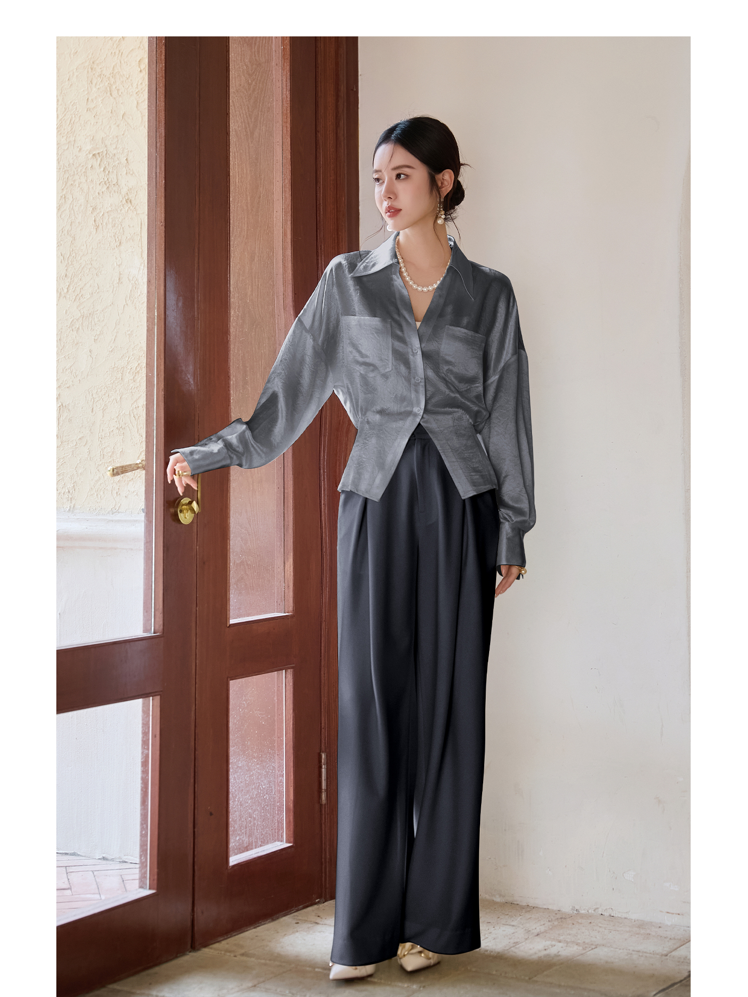 FUYAO扶摇 灰色衬衫女2025法式轻奢醋酸衬衣纯色百搭质感长袖上衣