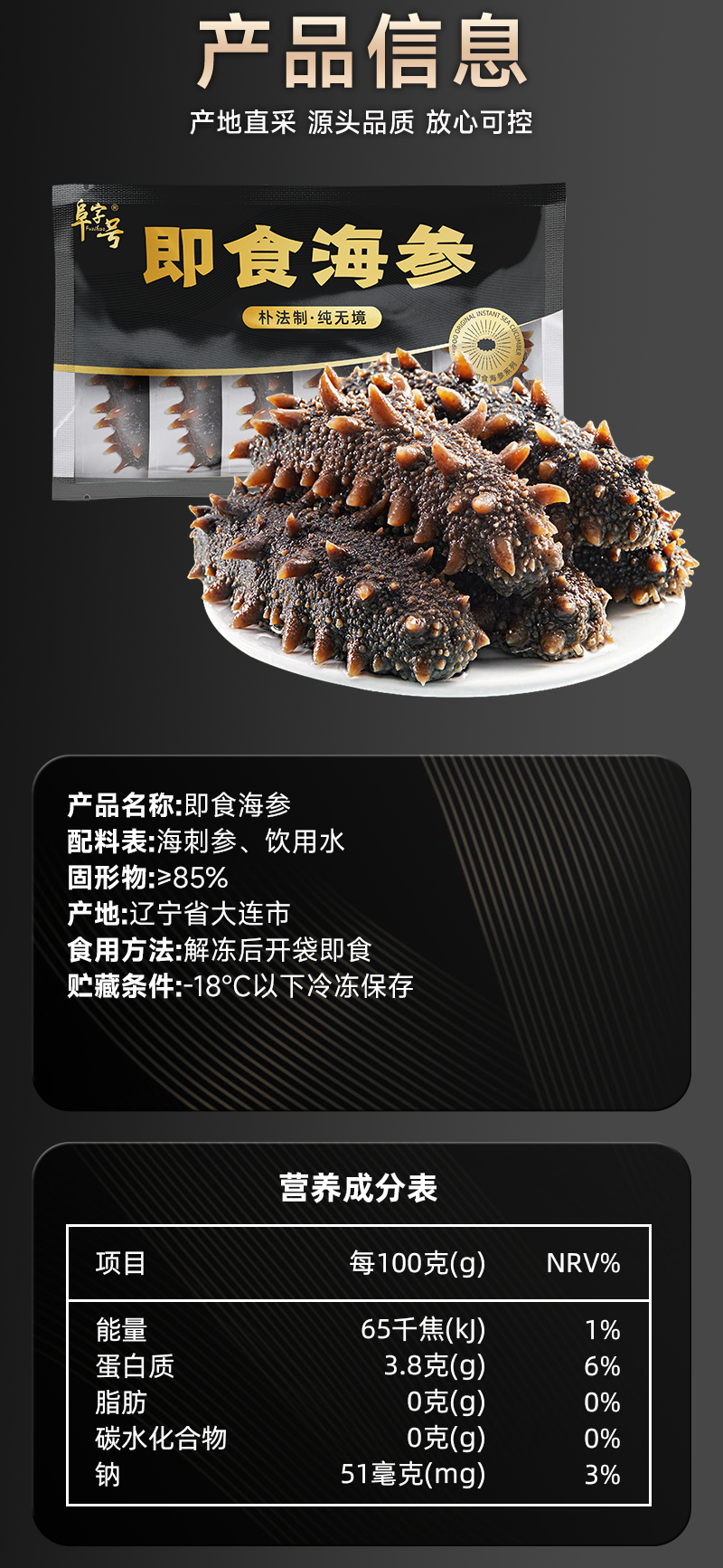 【大连海参】海朴即食海参500g/袋大连海参特产