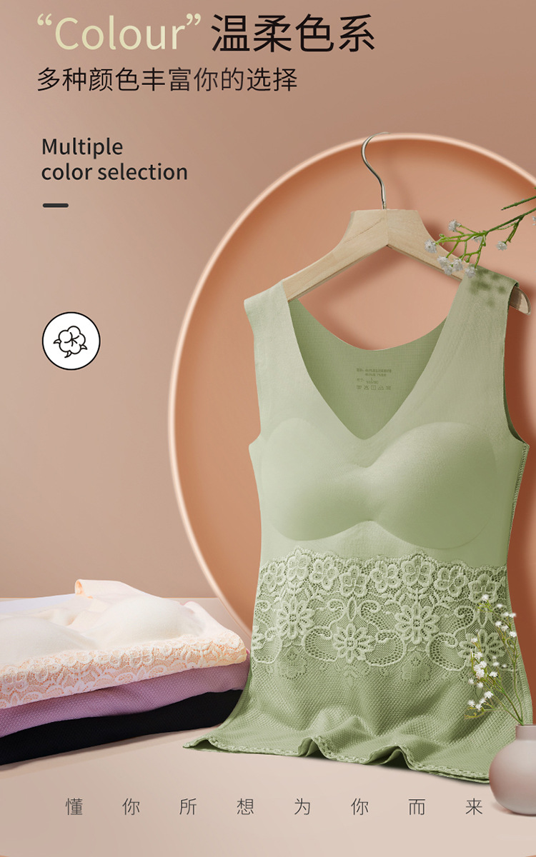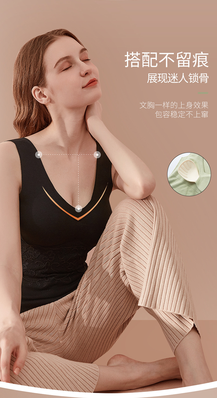 【买1送1】德绒保暖背心女 加厚款 自带胸垫 德绒内衣 自发热无痕打底衫 秋衣保暖背心
