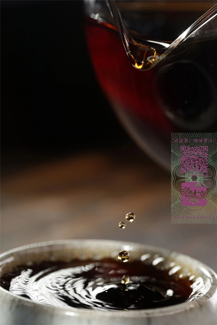 茶汤入口具强烈冲击力,苦重霸气,浓汤厚韵,显独特果蜜香、陈熟香,汤感润滑,苦底易化,回甘迅速,喉韵显清凉感,口腔驻留感明显,堪称下关熟茶“划时代”之作,正不负其名。