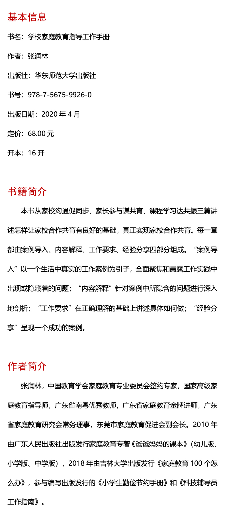 学校家庭教育指导工作手册 家校合作共育 张润林
