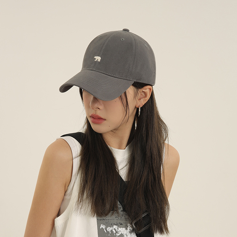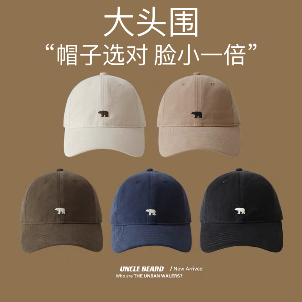 大帽檐鸭舌帽百搭北极熊刺绣棒球帽宽檐显脸小帽子中性鸭舌帽男女