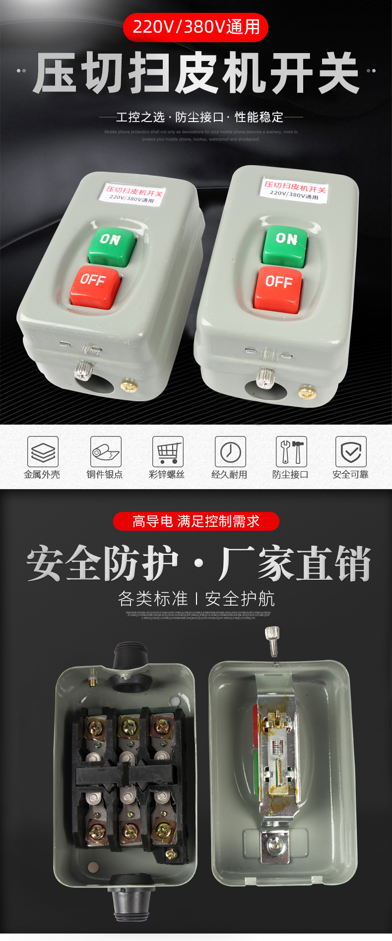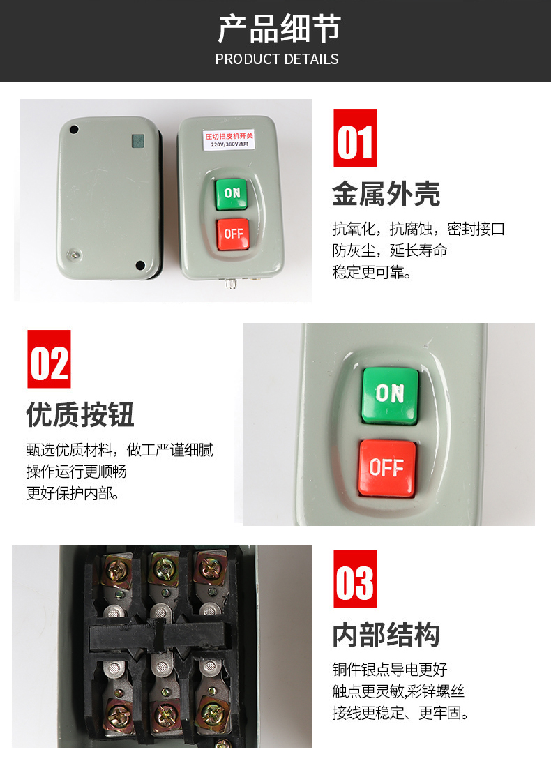 压面机扫皮机切面机按钮开关220v和380v通用。