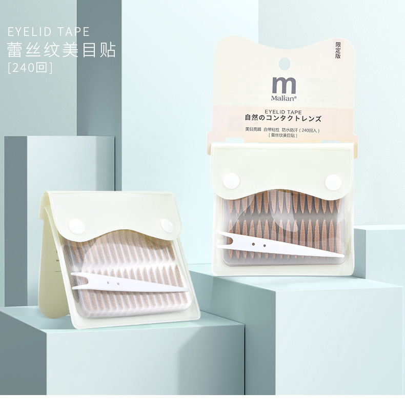 【玛莉安❗️蕾丝纹美目贴】自带粘性撕开即用,满足任何眼形,纽扣袋装240回,外出方便携带,240回蕾丝双眼皮贴隐形防水汗不翘边透气美目贴QQ