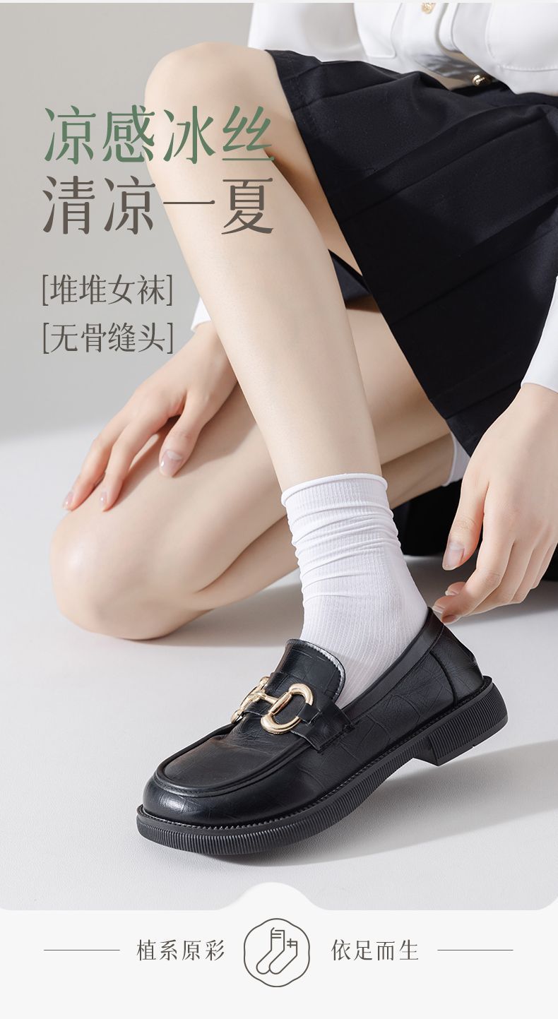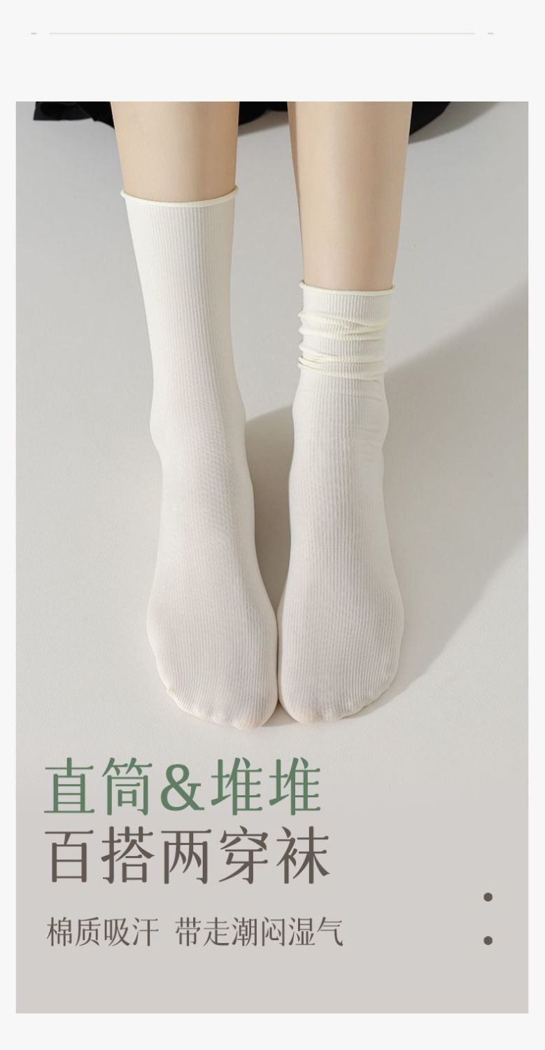 【凉感冰丝!天鹅绒冰冰袜】轻薄透气,一𧙕两穿,可直可堆!女夏季薄款袜子日系简约风潮中筒长袜堆堆袜
