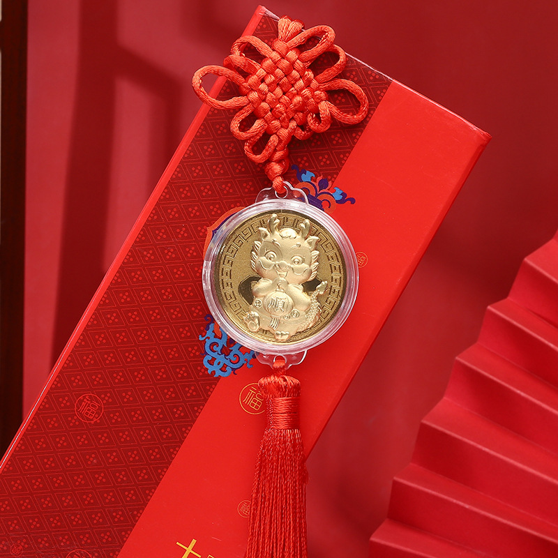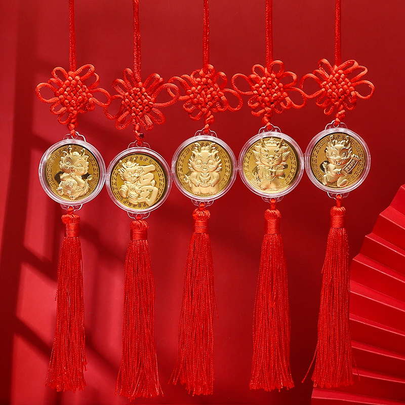 2025龙年【纪念币汽车挂饰】家居挂件 中国结流苏 金箔车挂