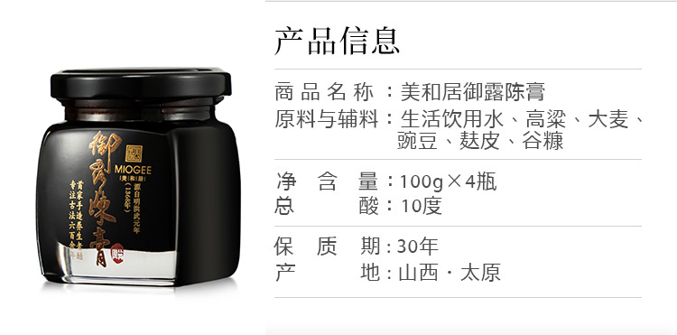【美和居-始于1368】30年醋膏山西老陈醋特产夏伏晒冬捞冰100g*4