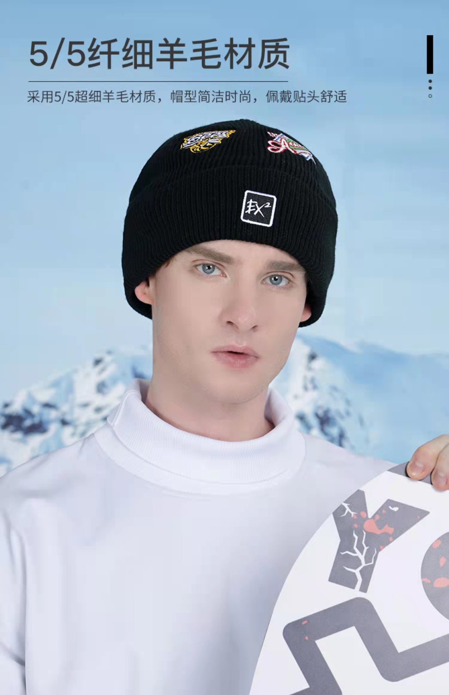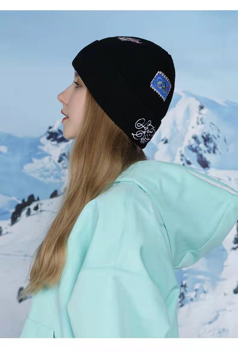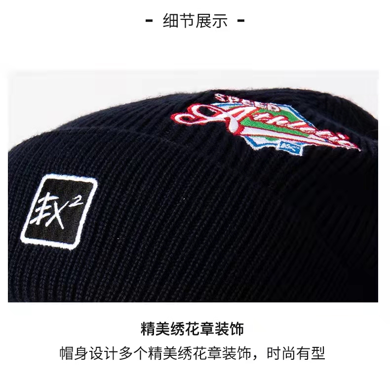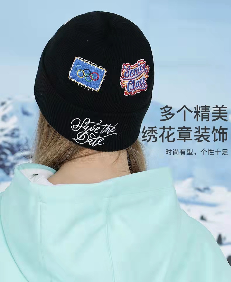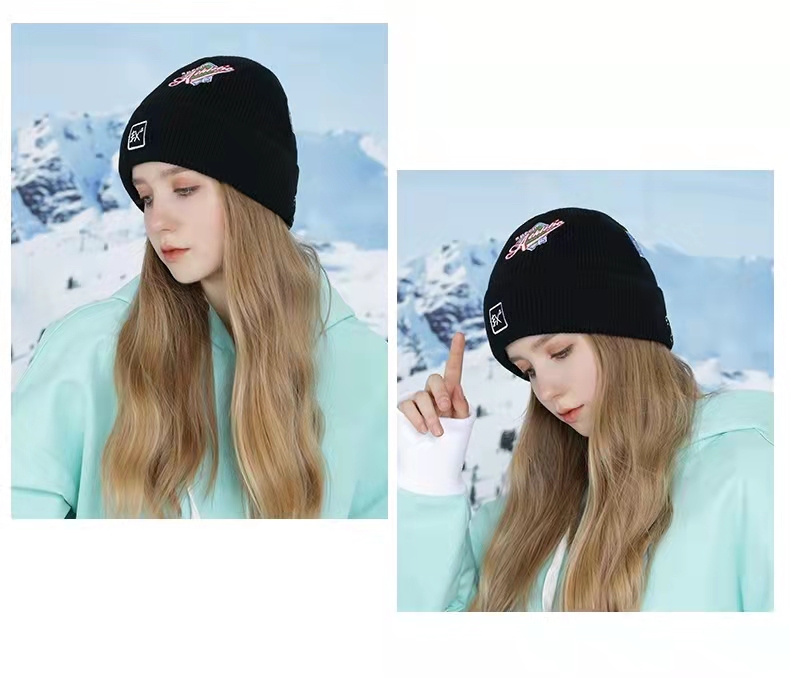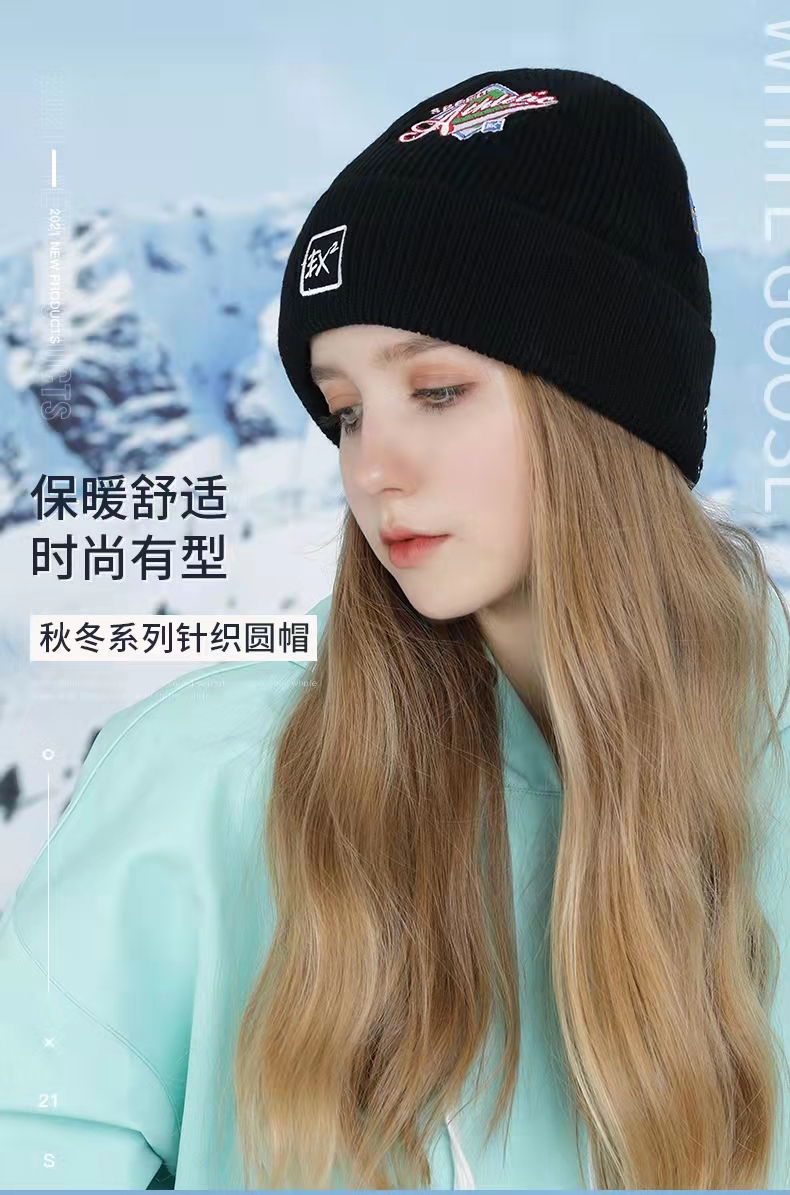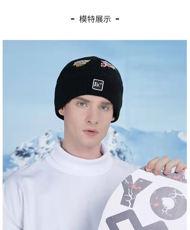 ex2伊海诗秋冬季保暖羊毛1:1针织毛线帽男女抗寒护耳加绒刺绣帽子366060