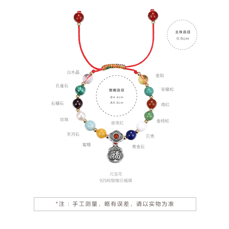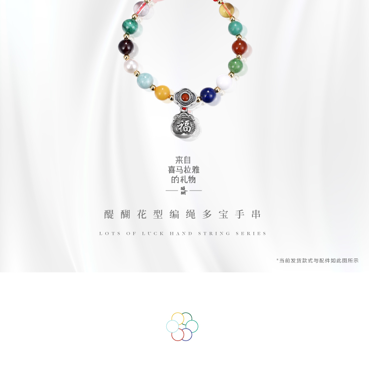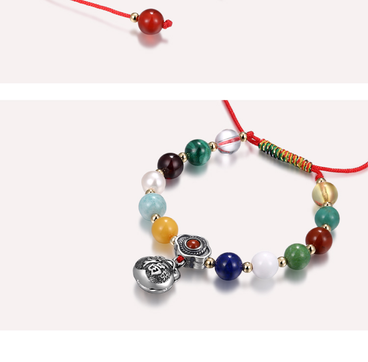 多宝手串‧银福袋五彩金刚结 足银配天然宝石珍珠幸运编绳醍醐原创
