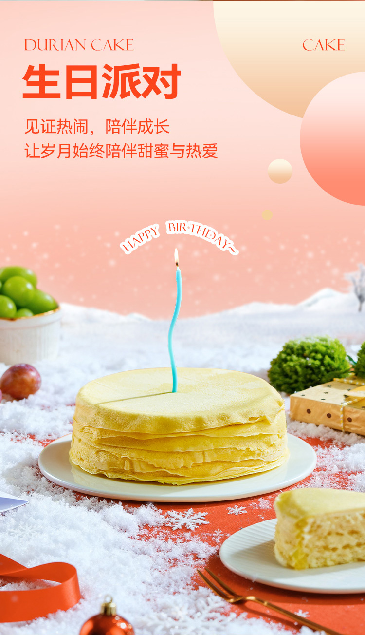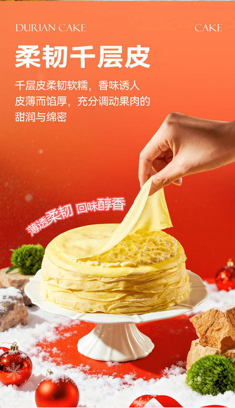 【任选2盒129.9元】榴芒一刻圣诞氛围款金枕榴莲千层蛋糕400g/盒 榴莲千层生日蛋糕金枕榴莲果肉动物奶油甜点