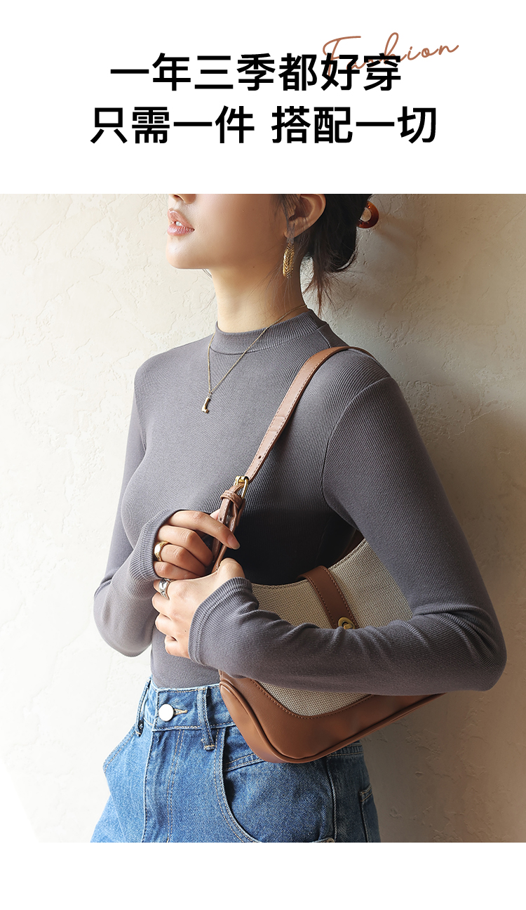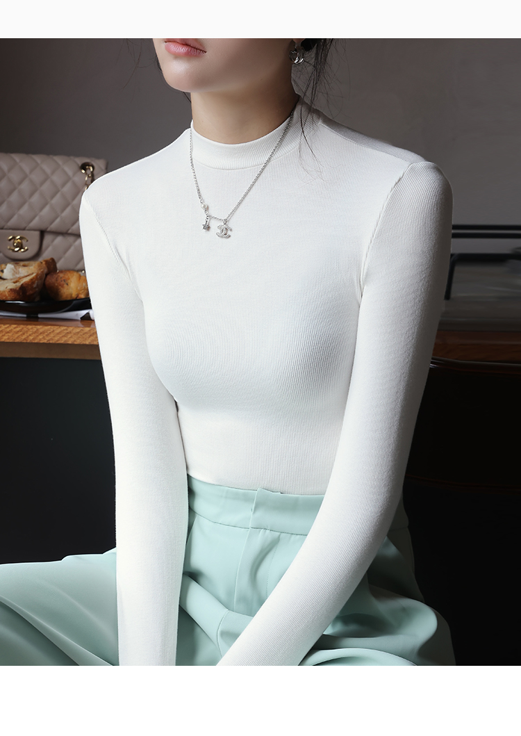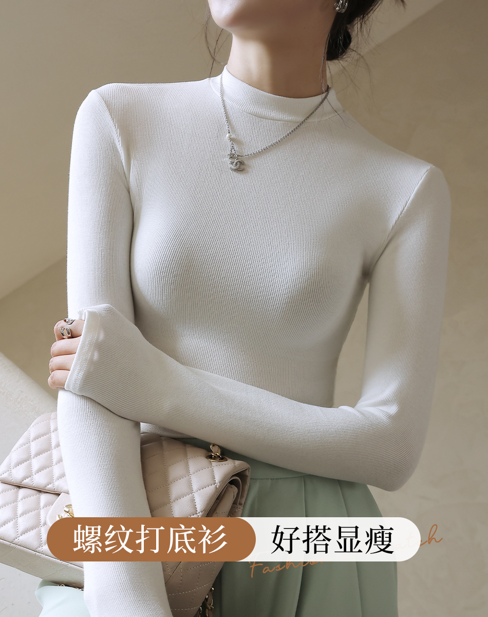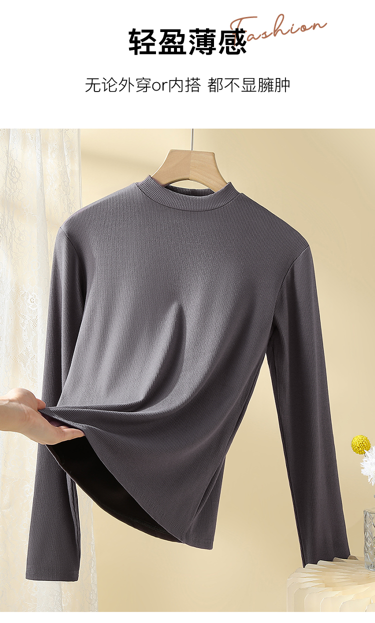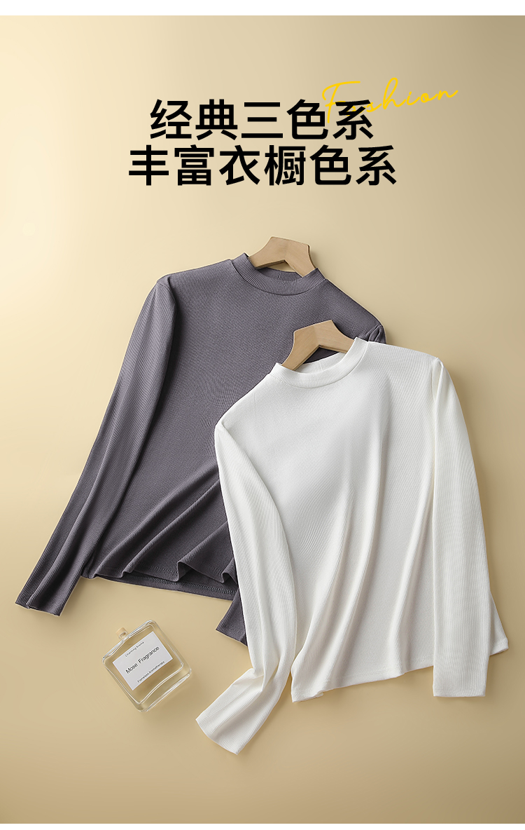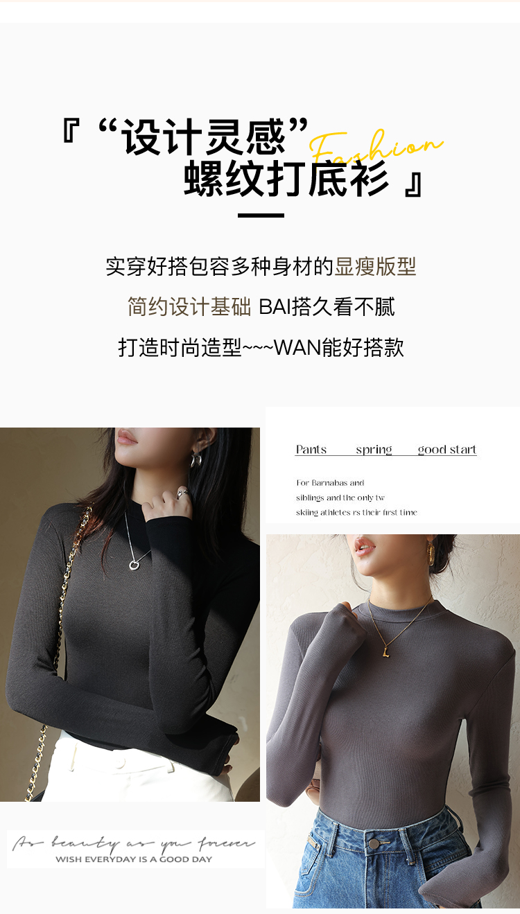 【高级感内搭】秋冬螺纹小立领打底衫女高弹修身显瘦时尚可外穿1657-02螺纹打底衫