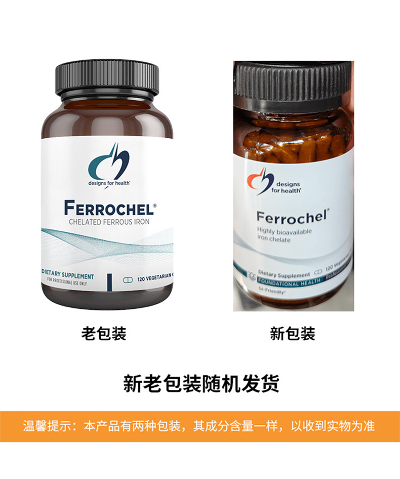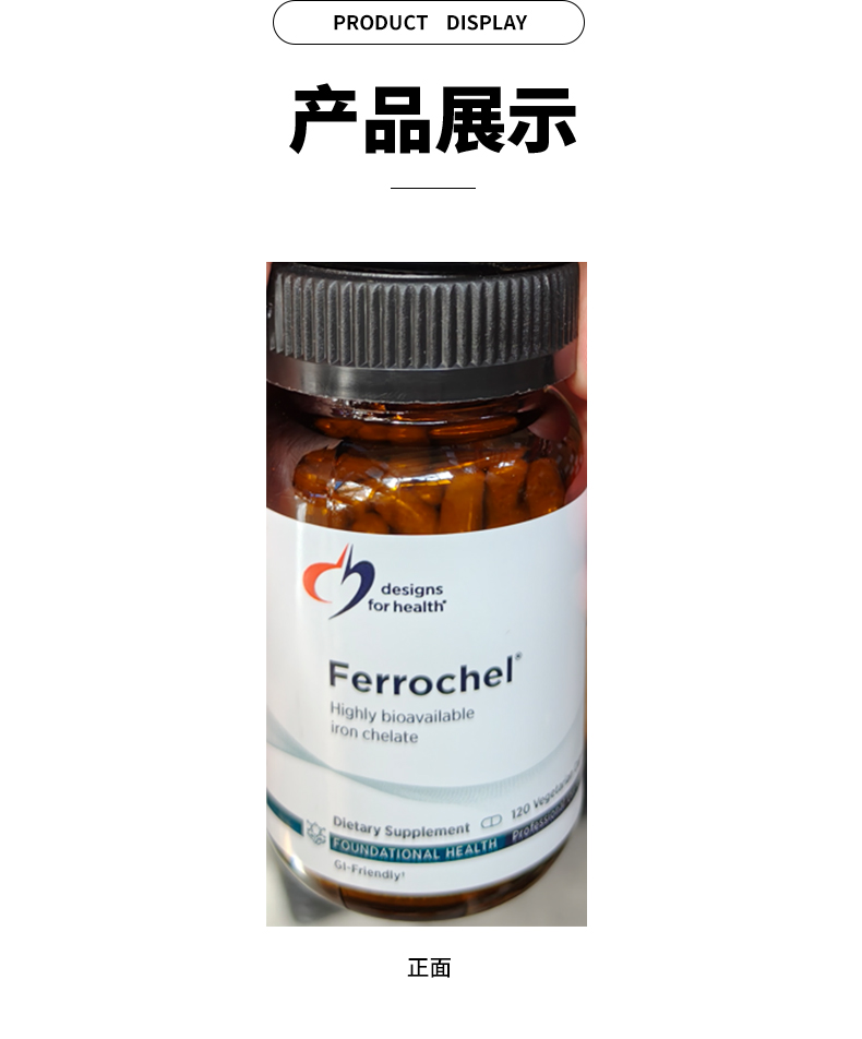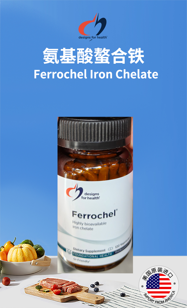 【效期至27年6月】氨基酸螯合铁胶囊 Designs for health Ferrochel® Iron Chelate caps 120粒/瓶