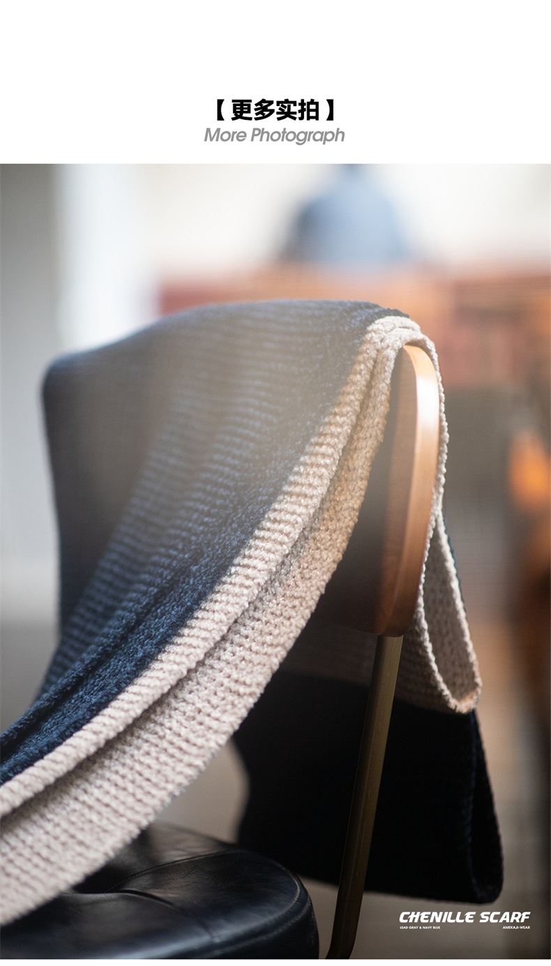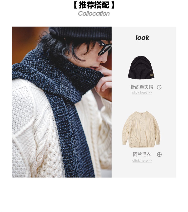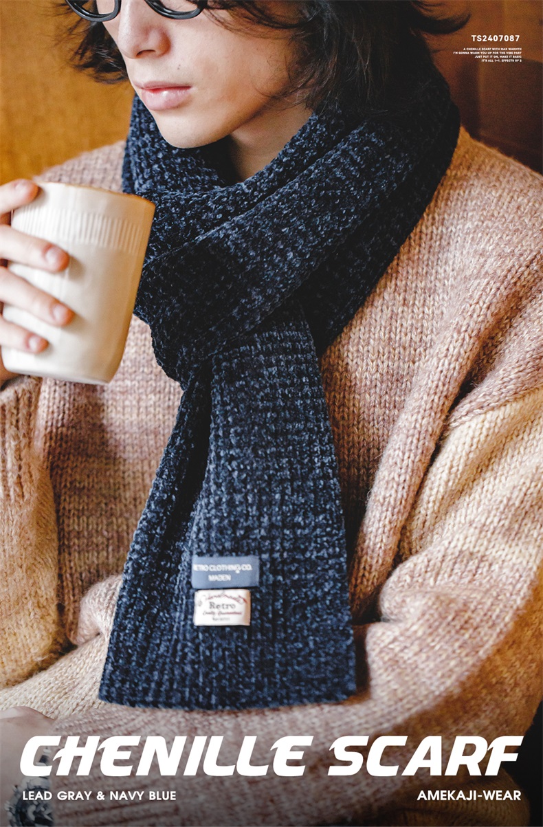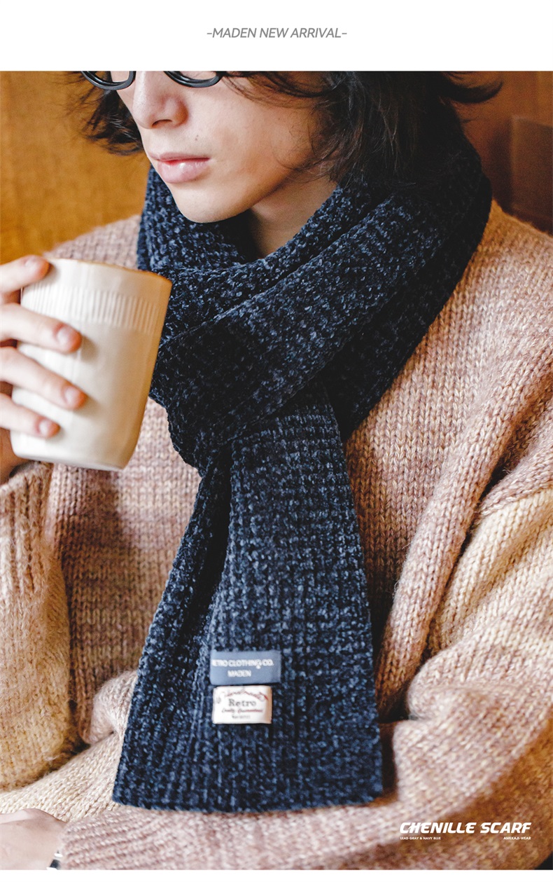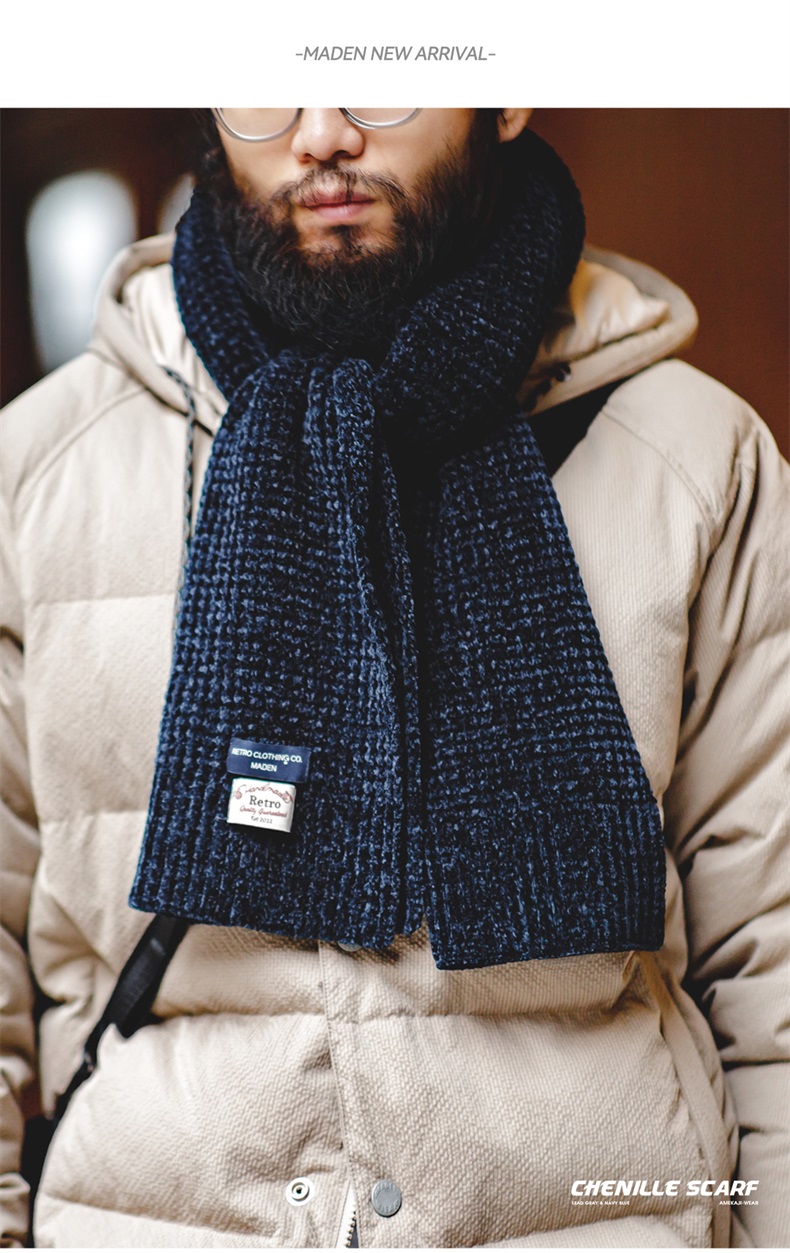 工装优选 美式复古雪尼尔围巾华夫格纯色长款防寒保暖围脖男秋冬