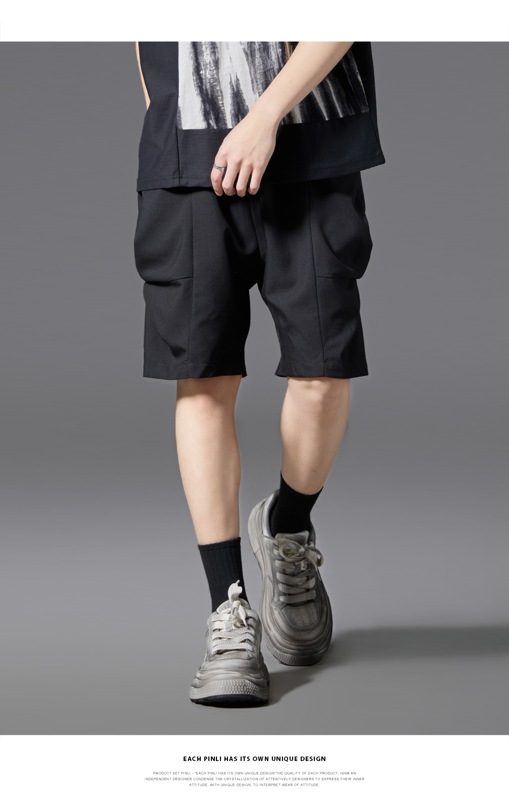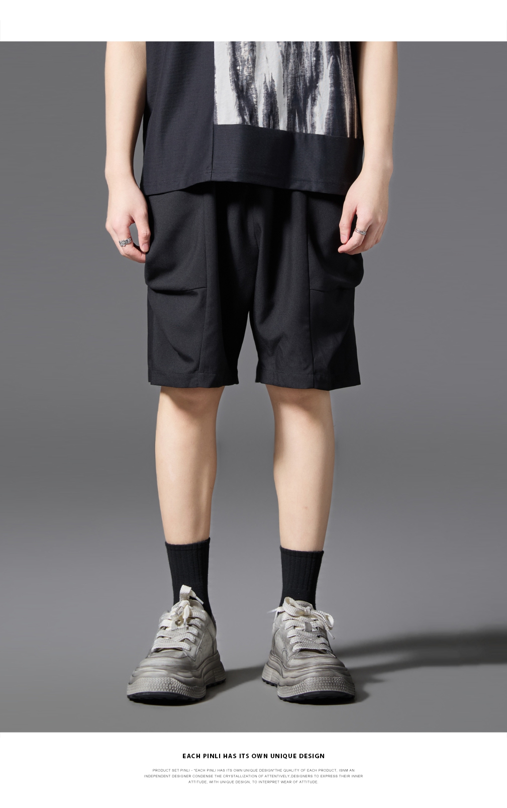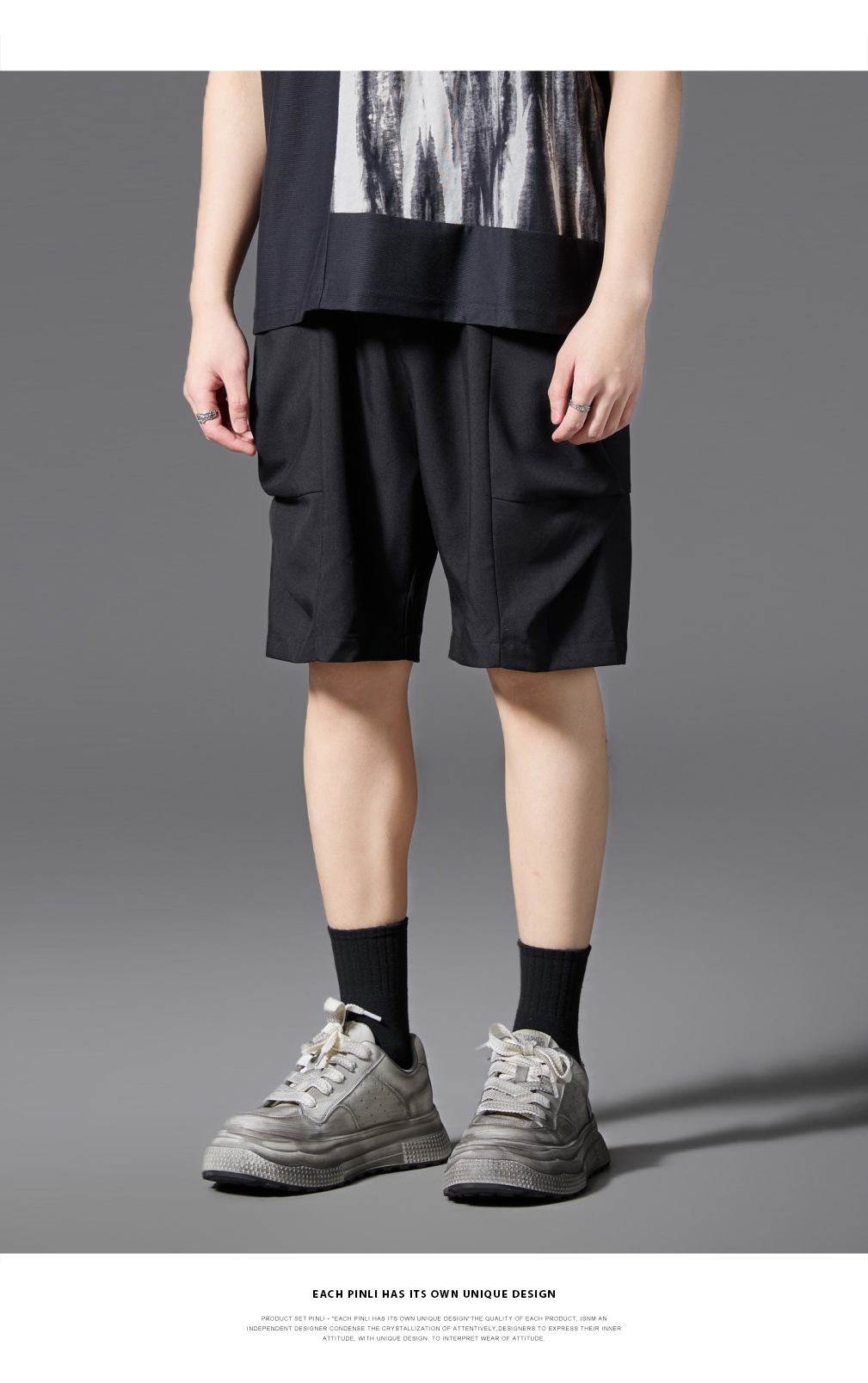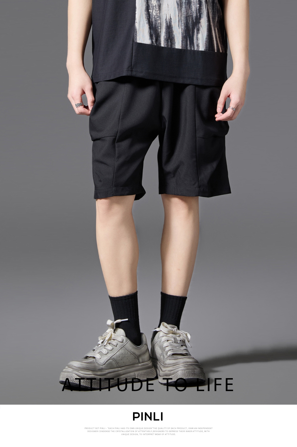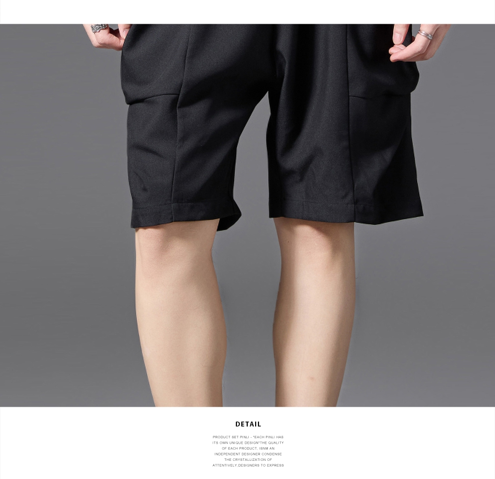 PINLI品立2025春夏新款男士简约休闲宽松短裤潮牌百搭黑色五分裤B252117017