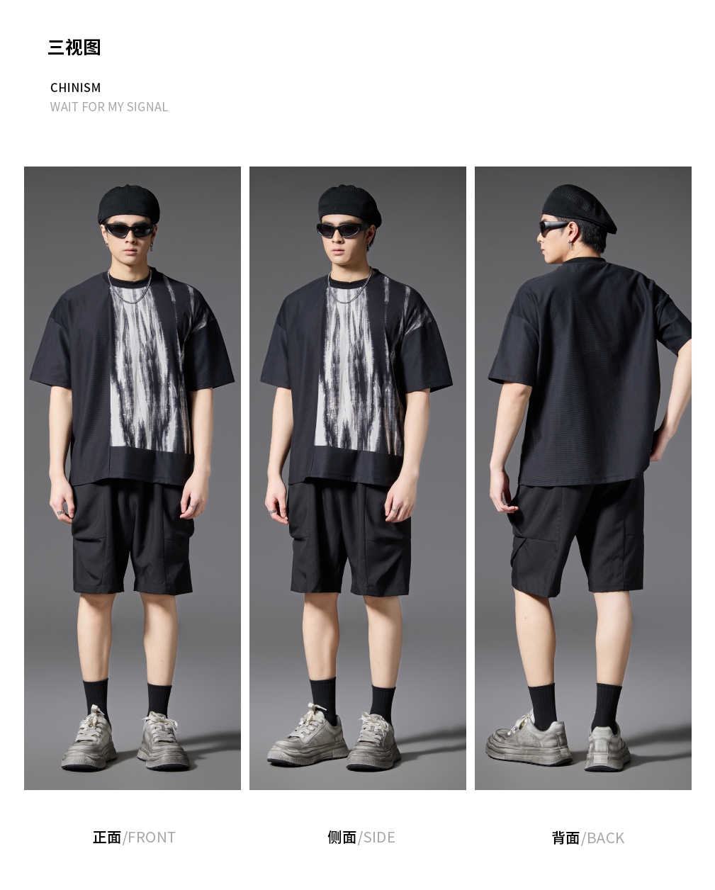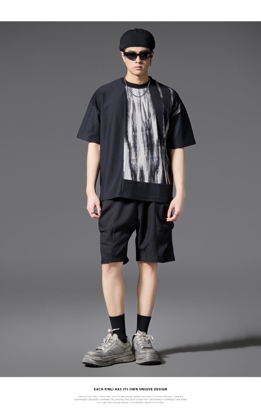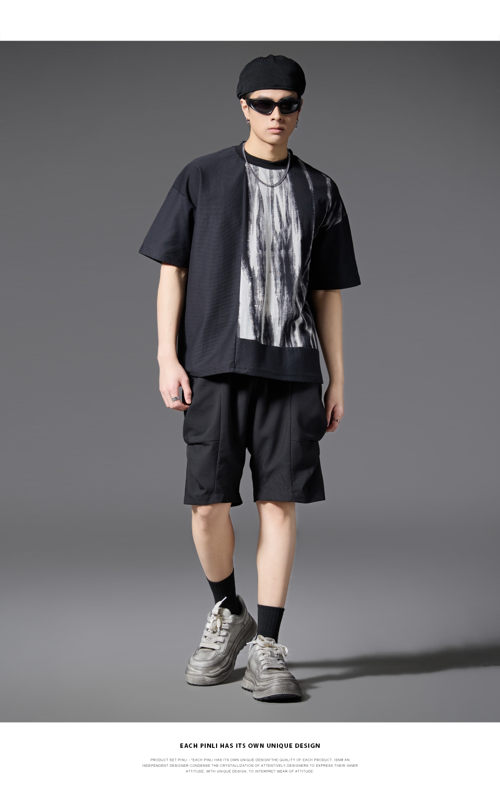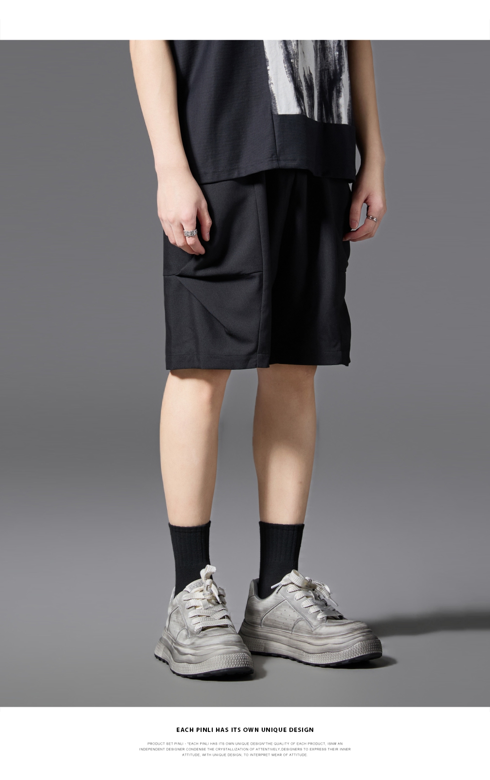PINLI品立2025春夏新款男士简约休闲宽松短裤潮牌百搭黑色五分裤B252117017