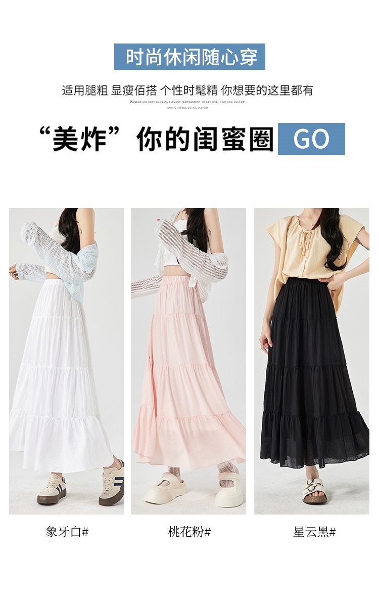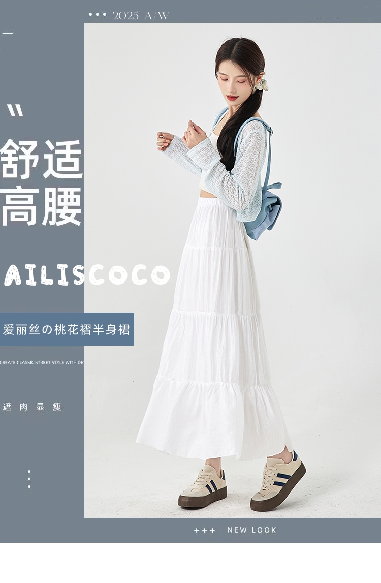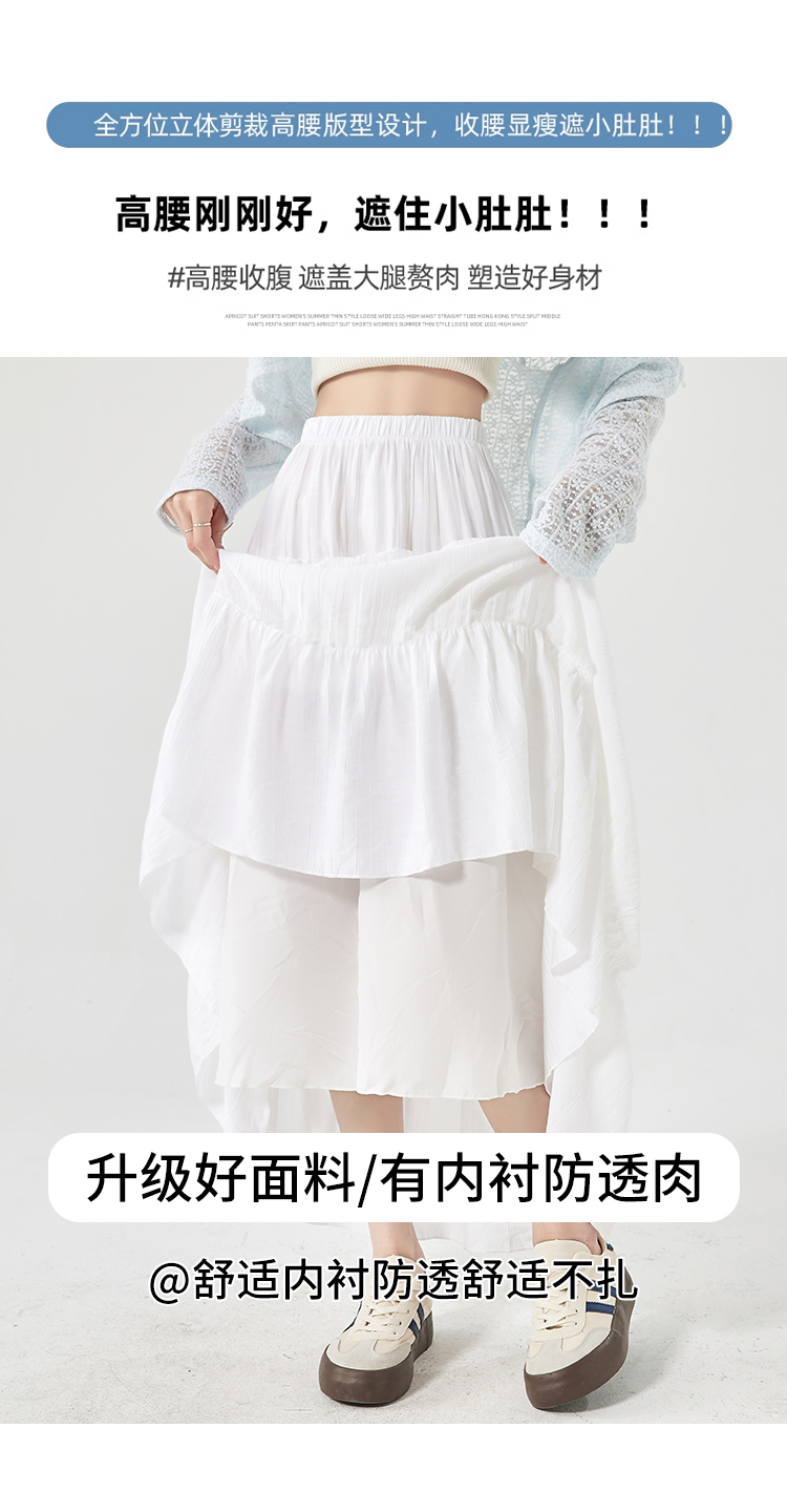 25s 春夏 桃花褶半身裙の 高腰收腹 遮肉显瘦 修饰腿型 带内衬防透肉 时髦百搭不挑人