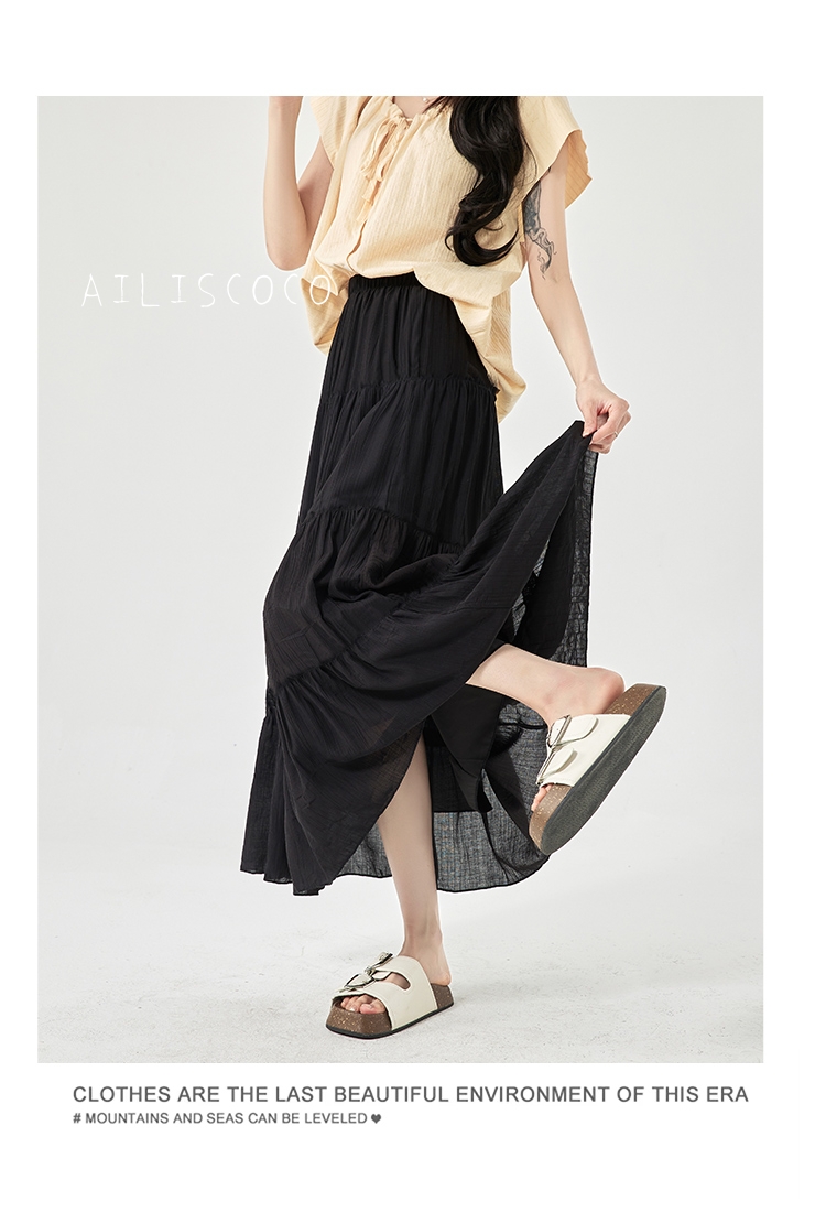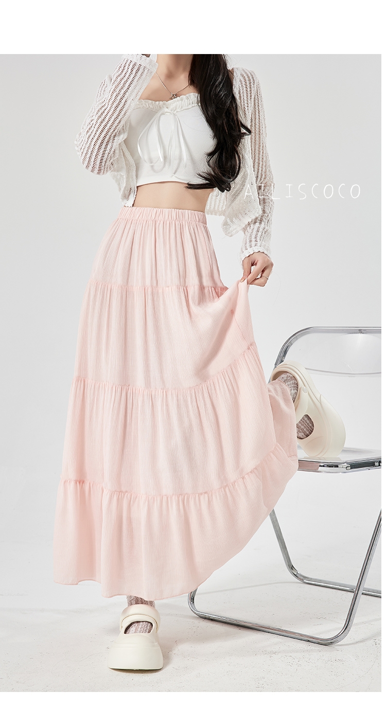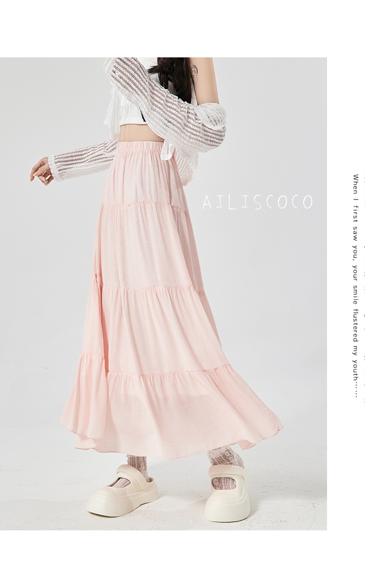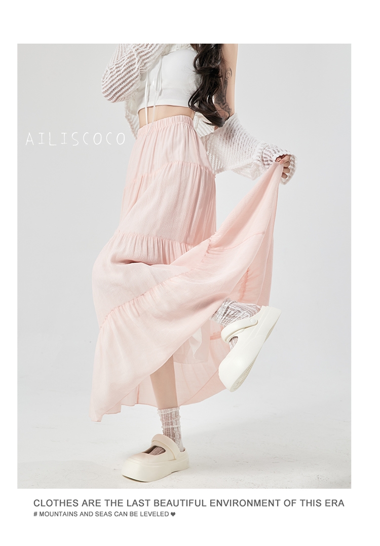 25s 春夏 桃花褶半身裙の 高腰收腹 遮肉显瘦 修饰腿型 带内衬防透肉 时髦百搭不挑人