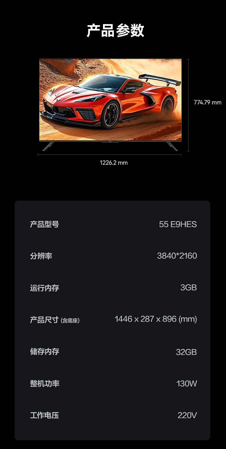 55英寸 全面屏智能投屏电视 55E9HES