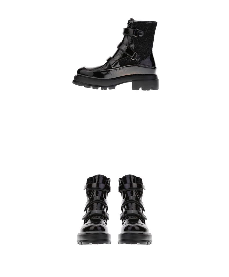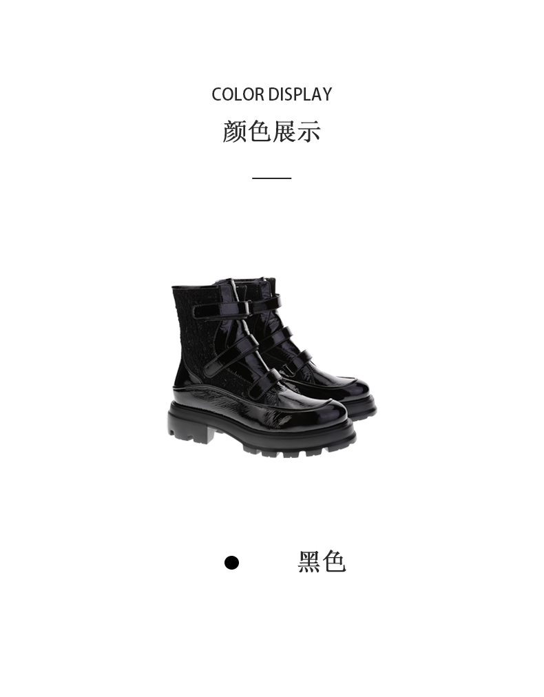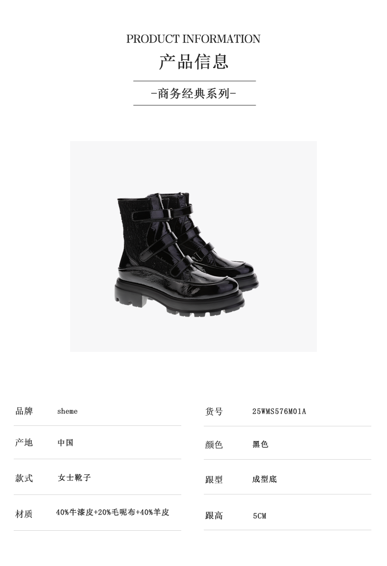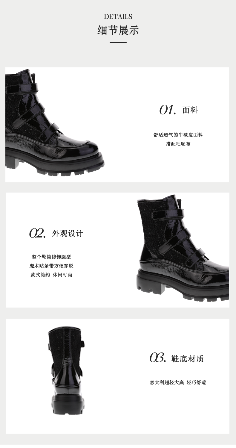 sheme漆皮搭配毛呢布魔术贴修腿型女式休闲时尚靴子可定制