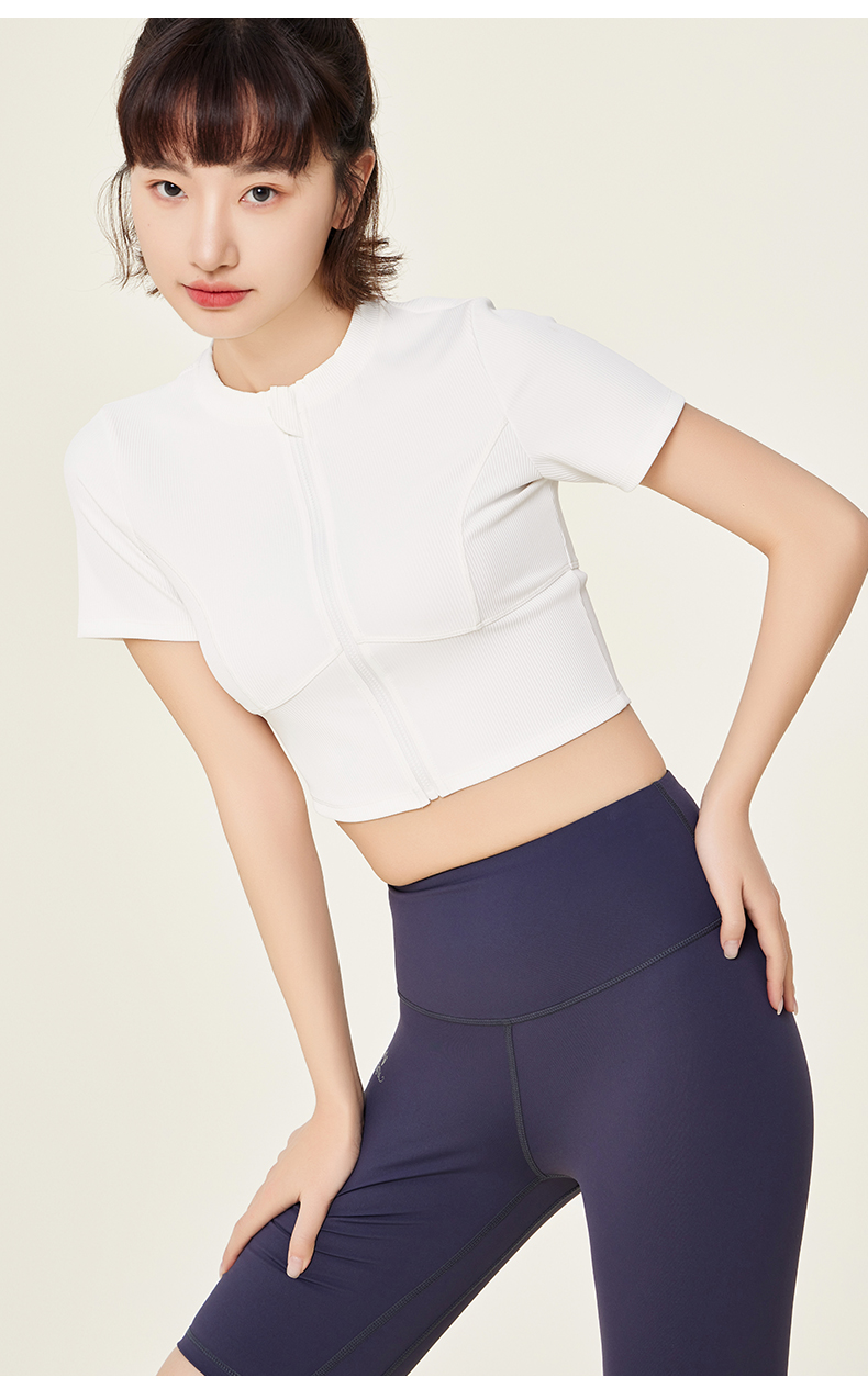 慕柏郦春季运动拉链瑜伽上衣短款透气修身健身服女1873