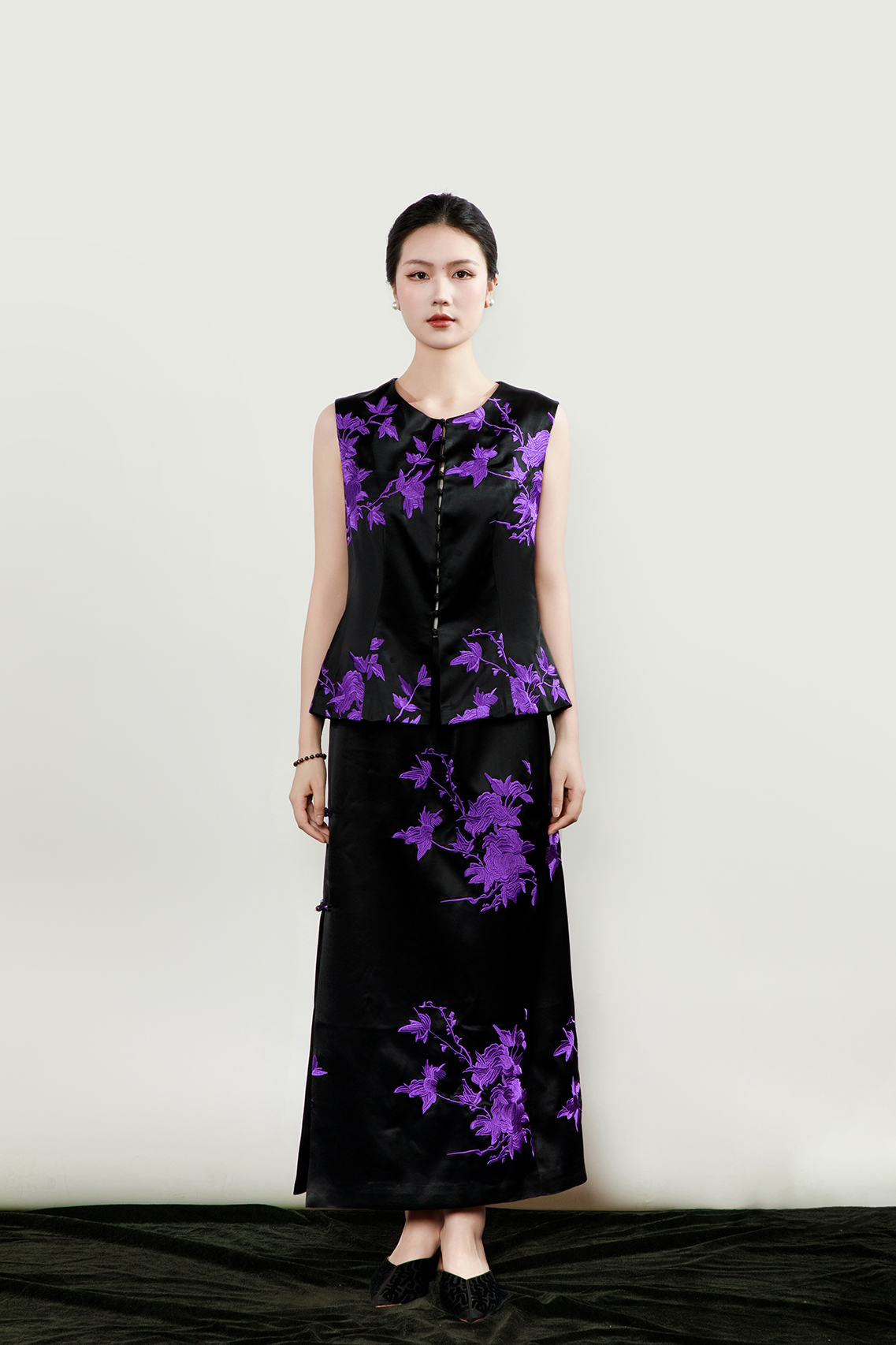 盛唐婧| 重磅三醋酸刺绣修身开叉半身裙