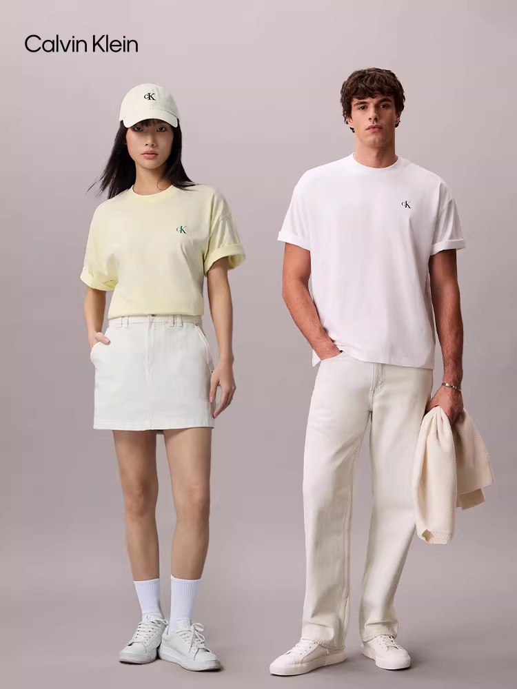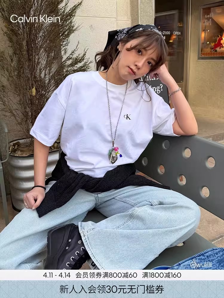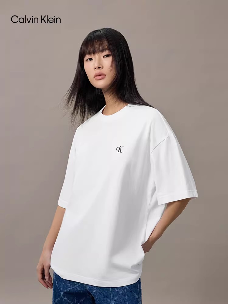 背后大刺绣+胸口小标,正肩宽松tee。基础全棉情侣字母t恤E041460