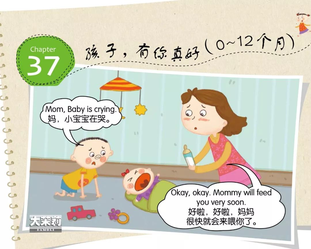 第4册 从出生到小学的亲子交流,就讲到了从孩子出生的养育到上学和外籍老师的沟通。对于刚出生的孩子来说,妈妈最常说的话有哪些?和小奶娃怎么说英文?
