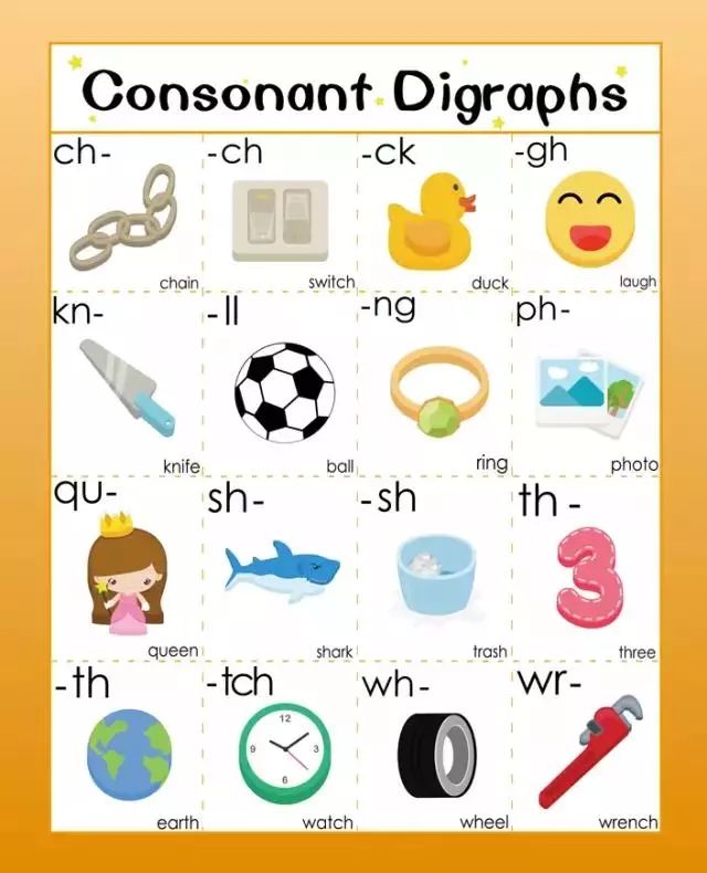 Consonant Digraphs(复合辅音),指两个以上辅音字母组合在一起,但共同发一个音。