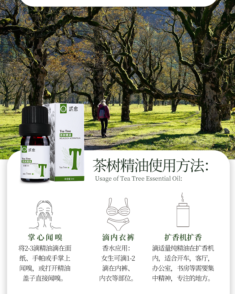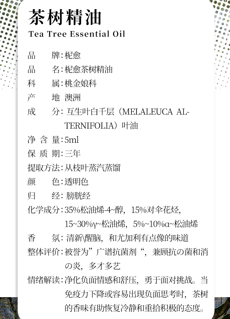 【柅愈】茶树纯精油5ml 澳洲原产茶树精油 单方纯精油 扩香/熏香/调油