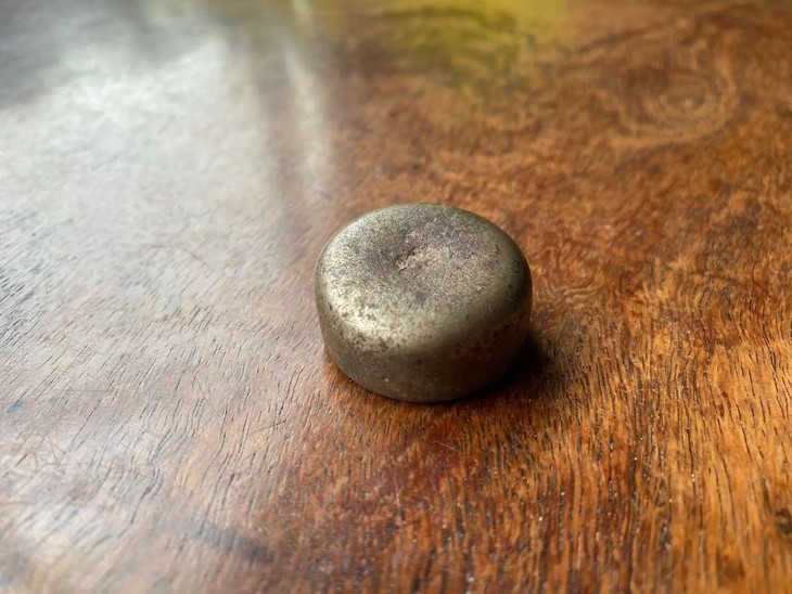 此锌铁合金饼形镇纸除边沿老磕碰痕外,保存完好无损。