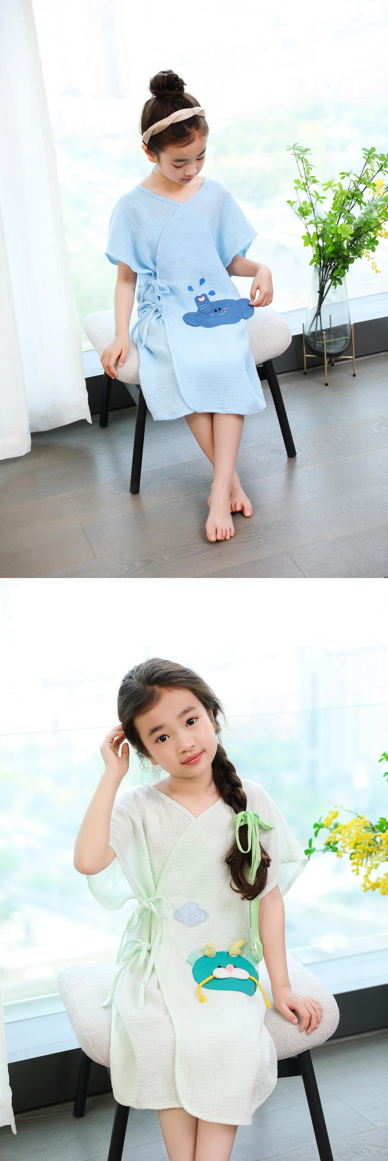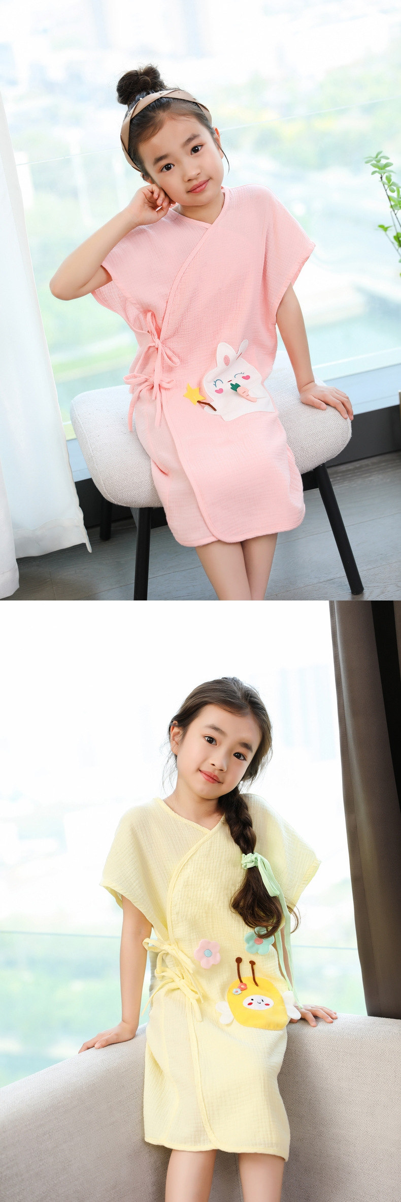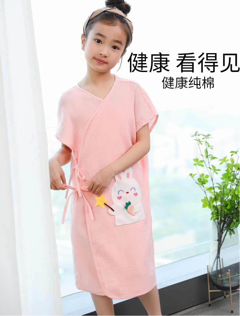 儿童浴袍纯棉女童斗篷可穿吸水速干游泳四季通用夏季纱布浴衣_ym