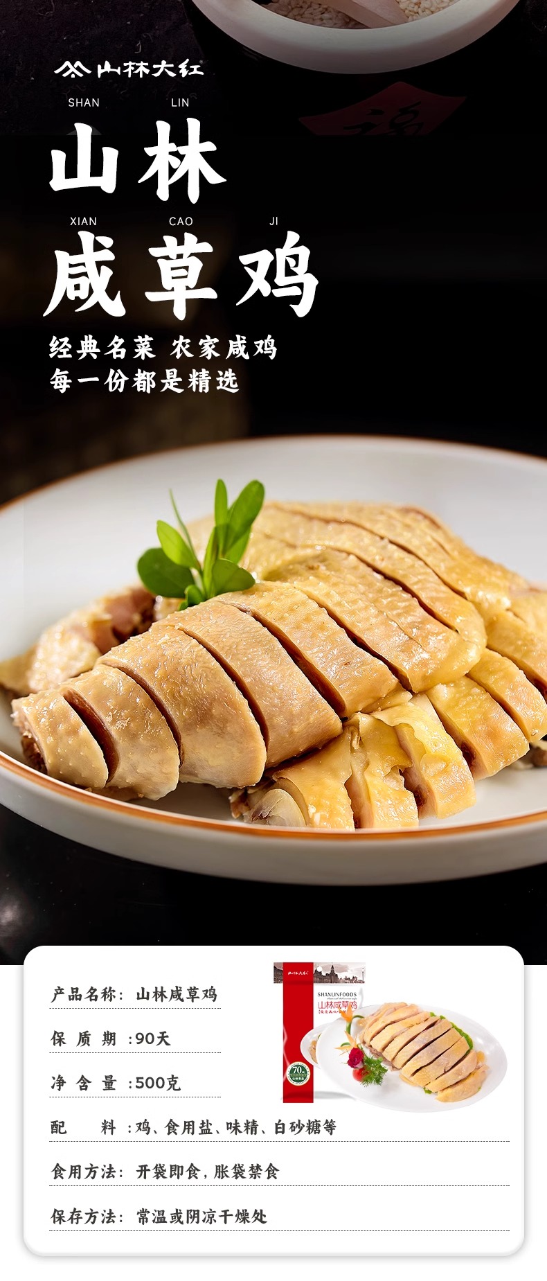 山林大红咸草鸡上海特产白斩鸡整只真空卤味熟食开袋即食盐焗鸡肉