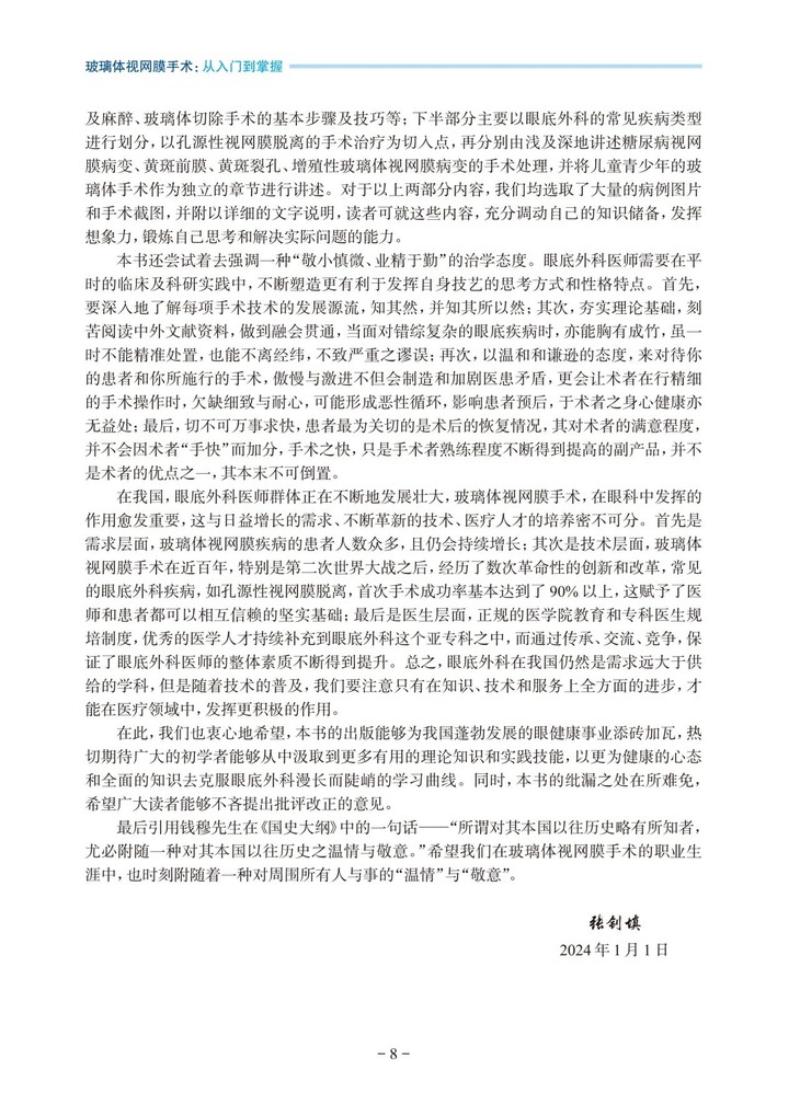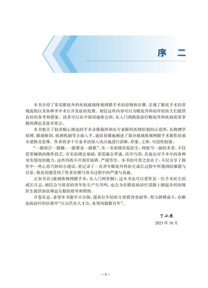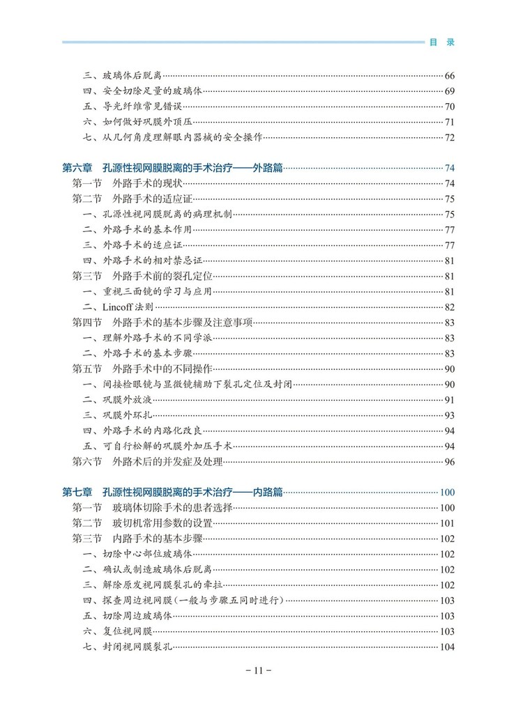 2创新性,本书囊括了著者在临床诊疗工作中总结的创新方法,如从物理学的角度理解玻璃体视网膜手术、改良型的可自行松解巩膜外加压术、重水短期眼内填充治疗巨大裂孔性视网膜脱离、视网膜脱离合并脉络膜脱离的微创化处理以及内界膜的“阴阳”染色法等。