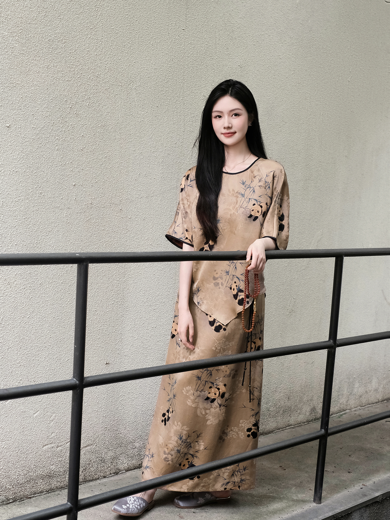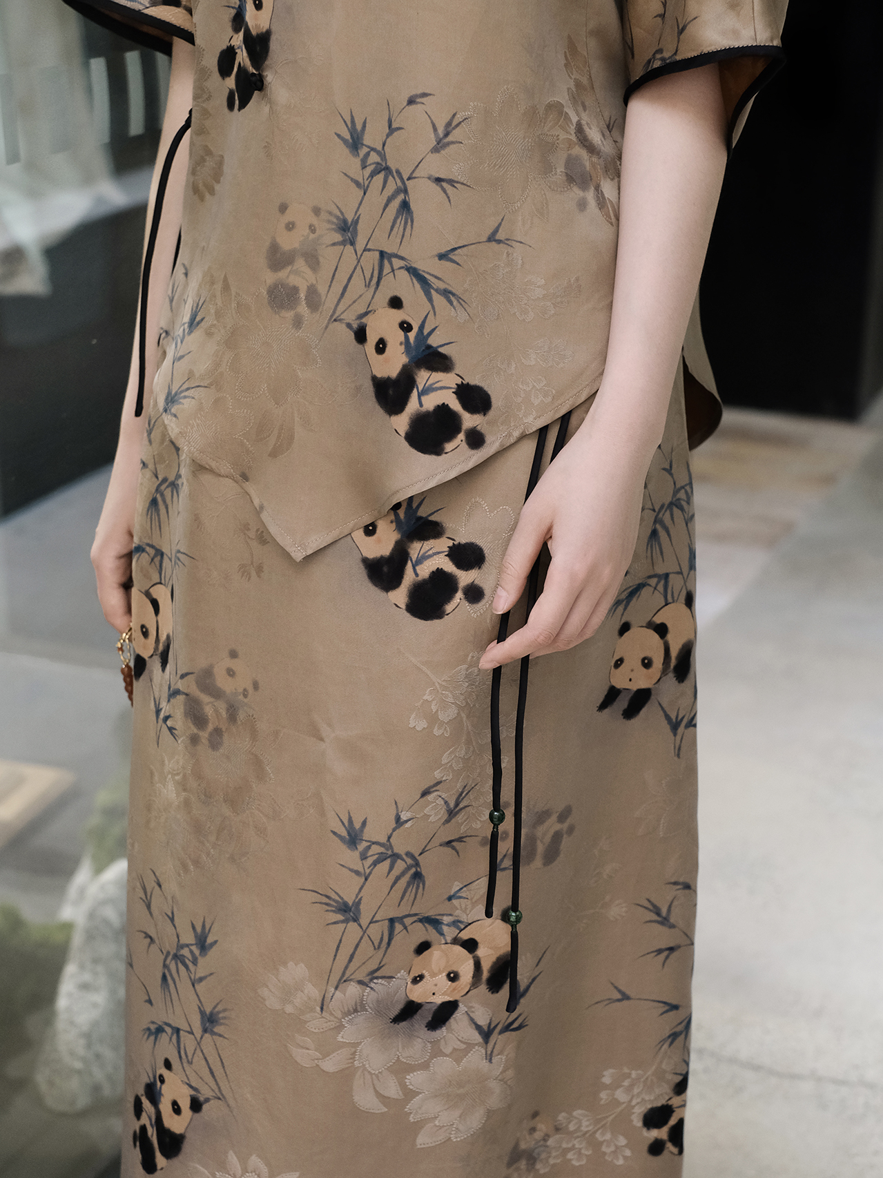 盛唐婧| 香云纱印花熊猫抱竹修身直筒半身裙