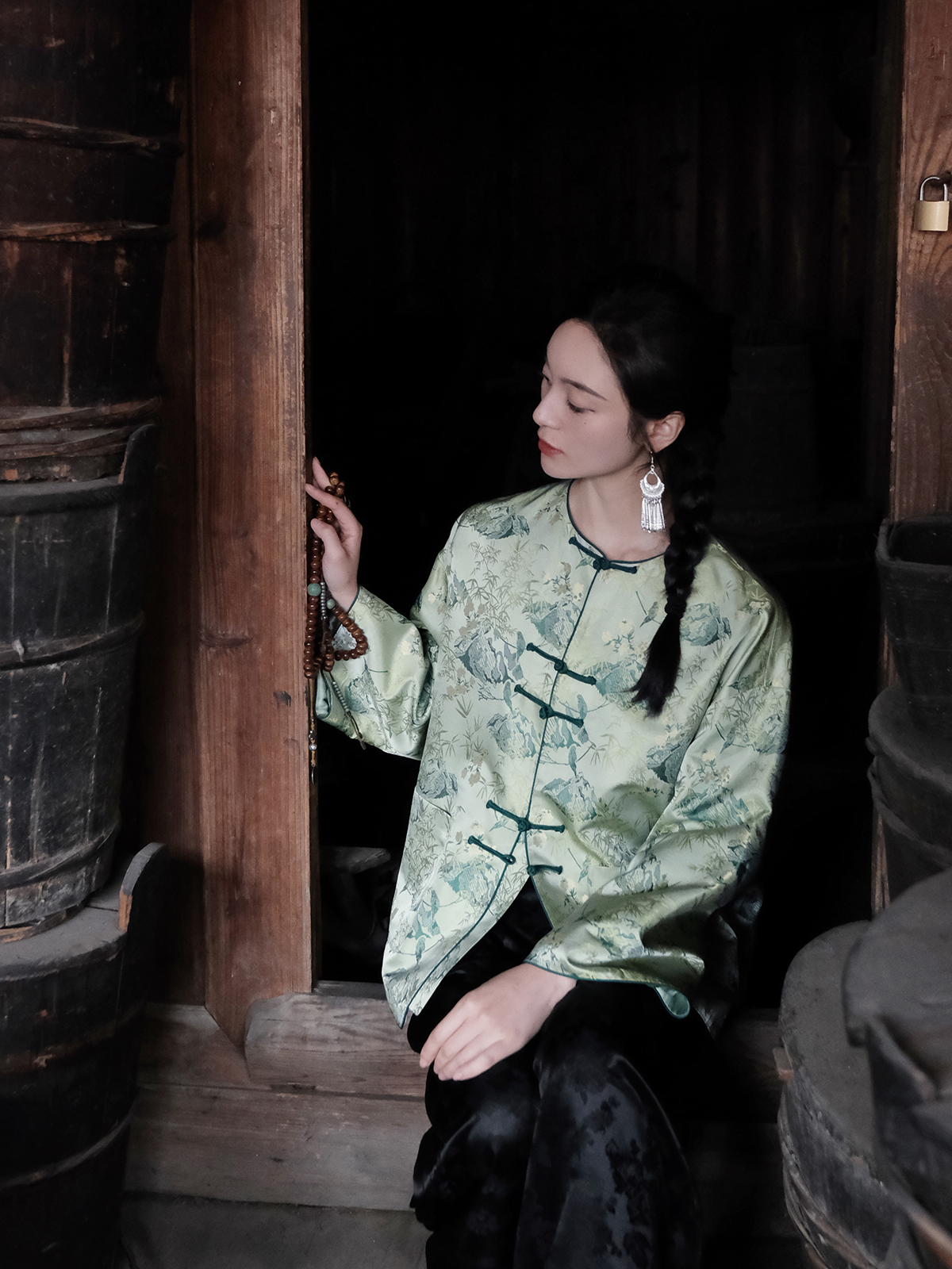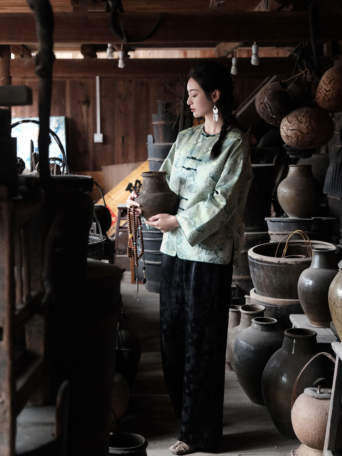 盛唐婧 |淡翠绿国风提花上衣[特价品]
