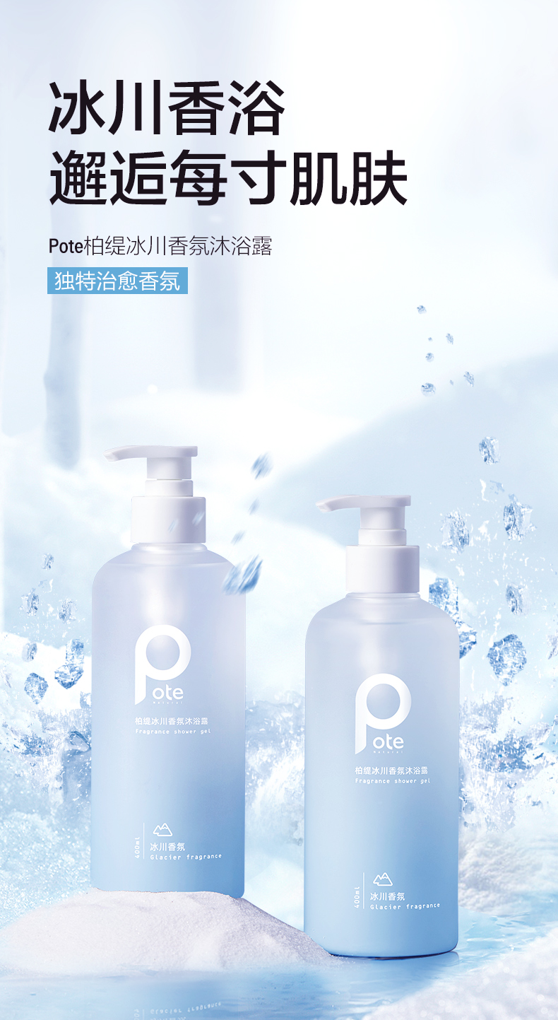 【POTE柏缇-冰川岛屿香氛沐浴露系列】4D水杨酸微球专利清洁配方、4重保湿成分不干燥不拔干、植物除螨专利认证去角质、两种治愈香味选择~还你白嫩牛奶肌!