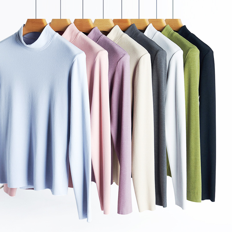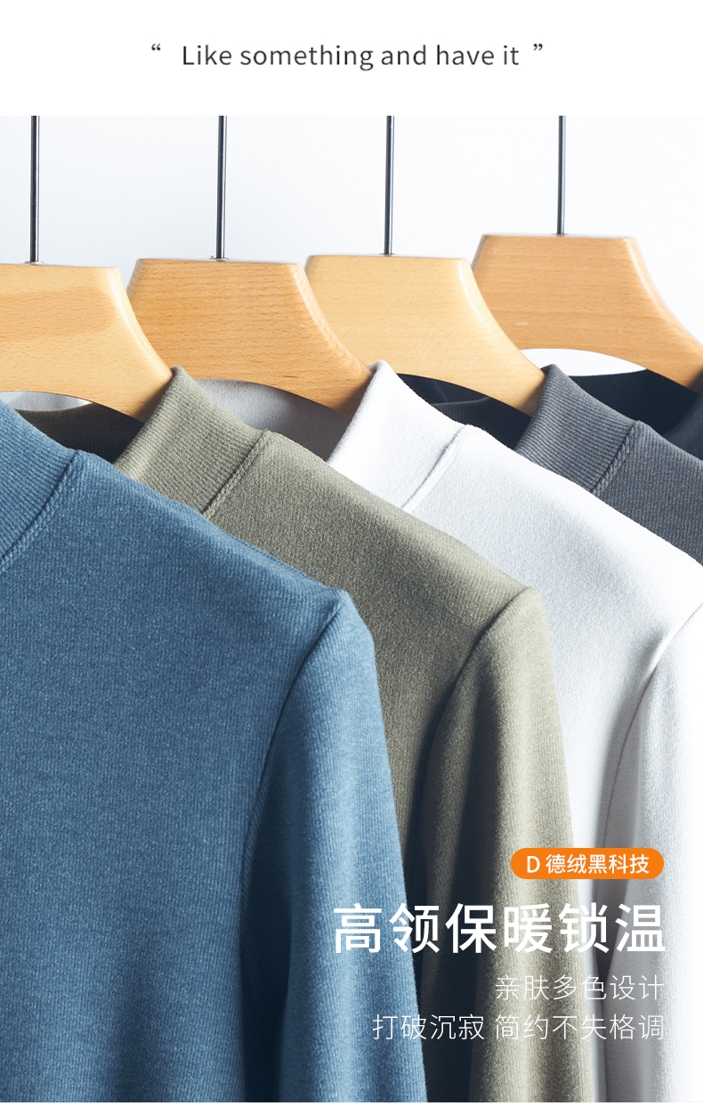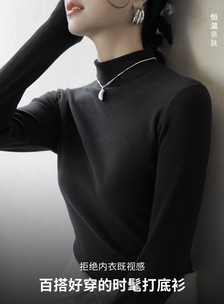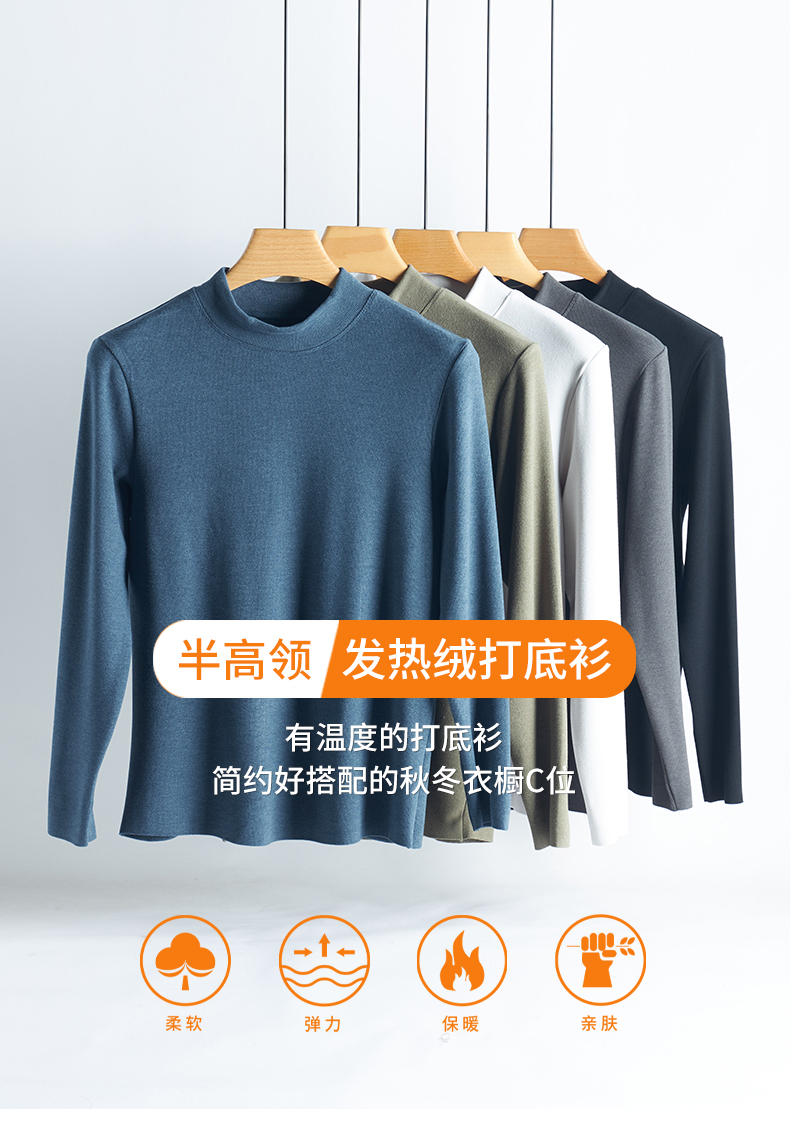 男女同款 德绒竖条半高领发热绒打底衫 内里舒适绒面 接触皮肤无刺激 蓄热恒温 发热保暖