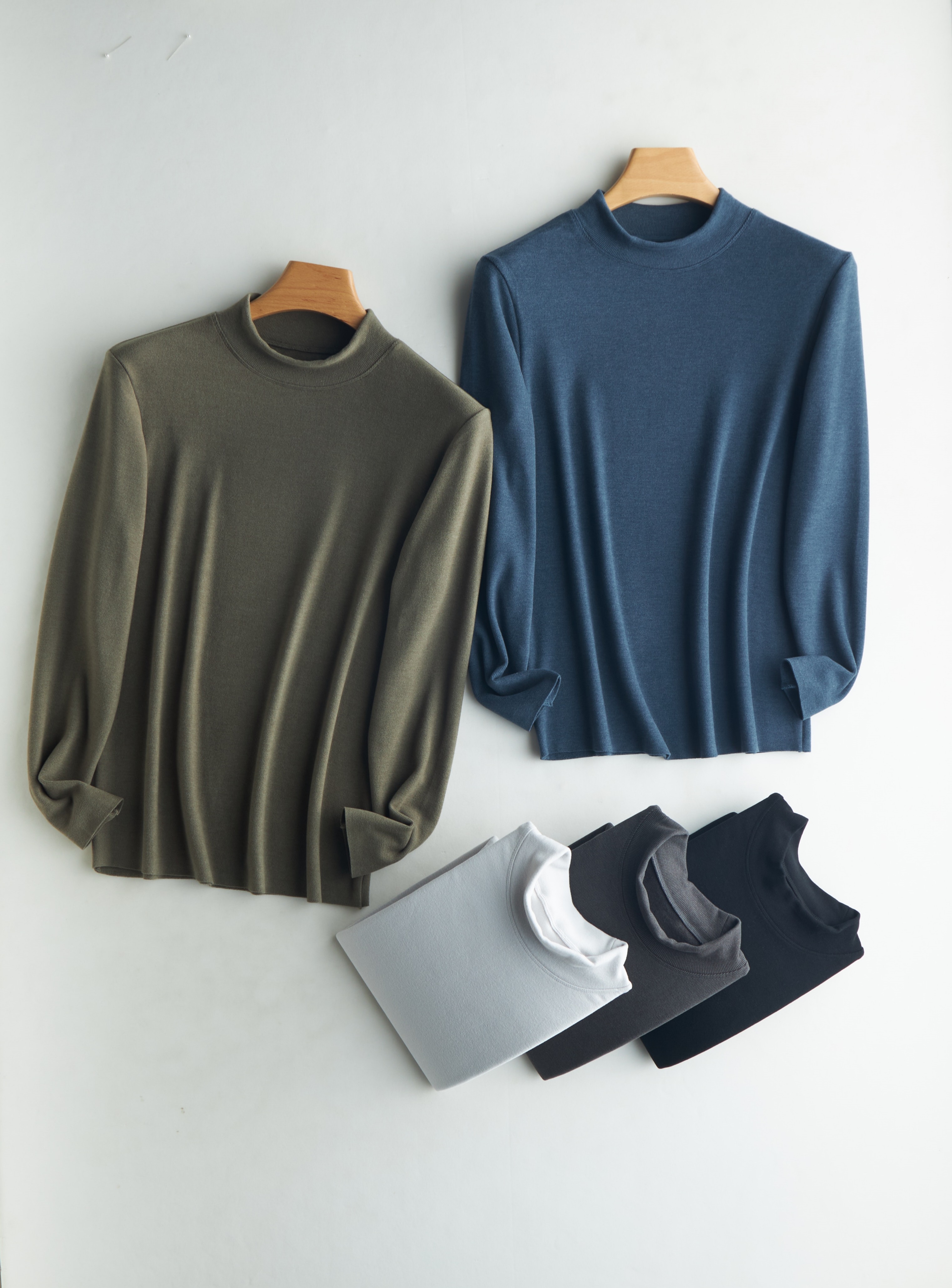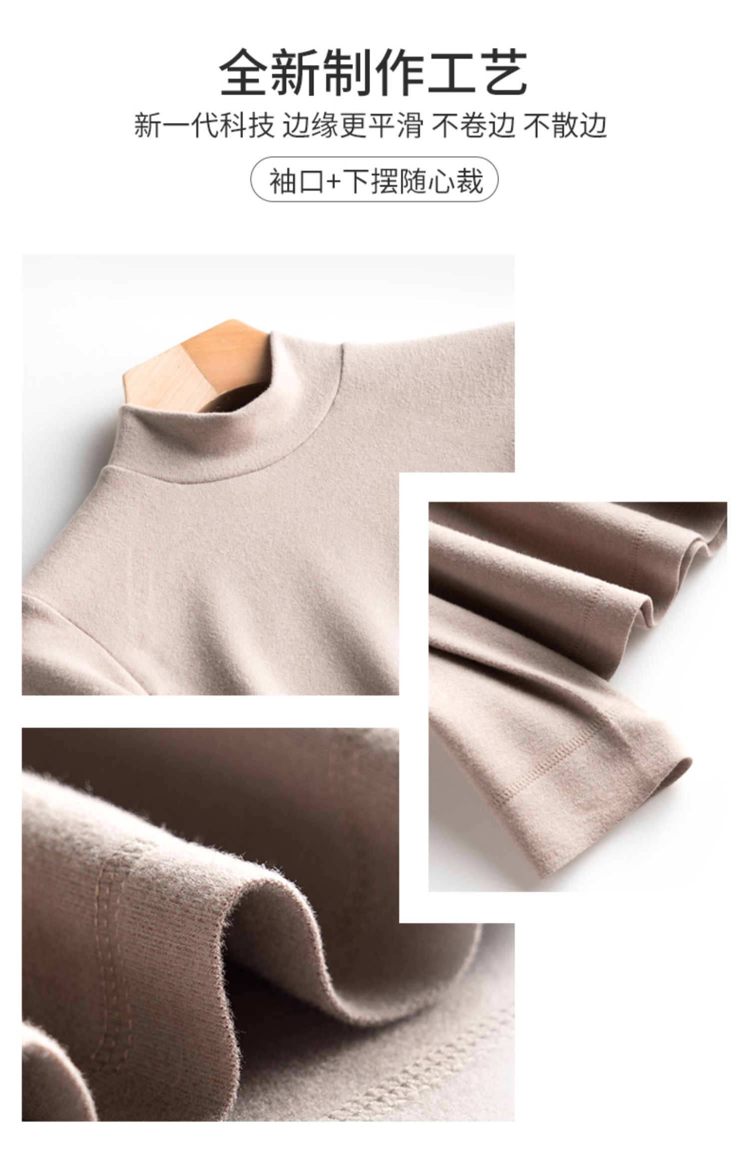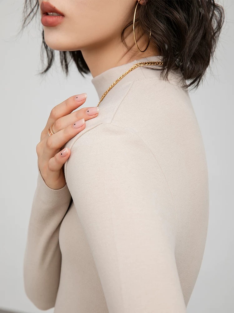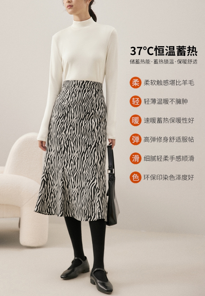男女同款 德绒竖条半高领发热绒打底衫 内里舒适绒面 接触皮肤无刺激 蓄热恒温 发热保暖