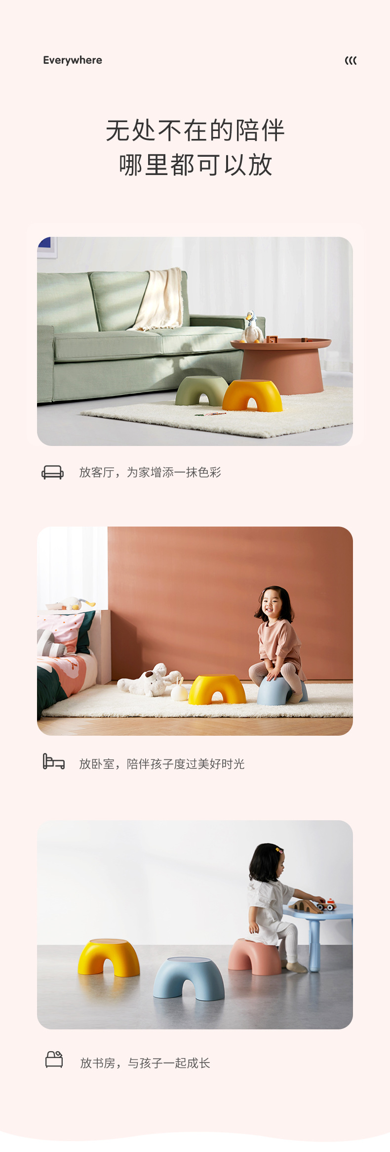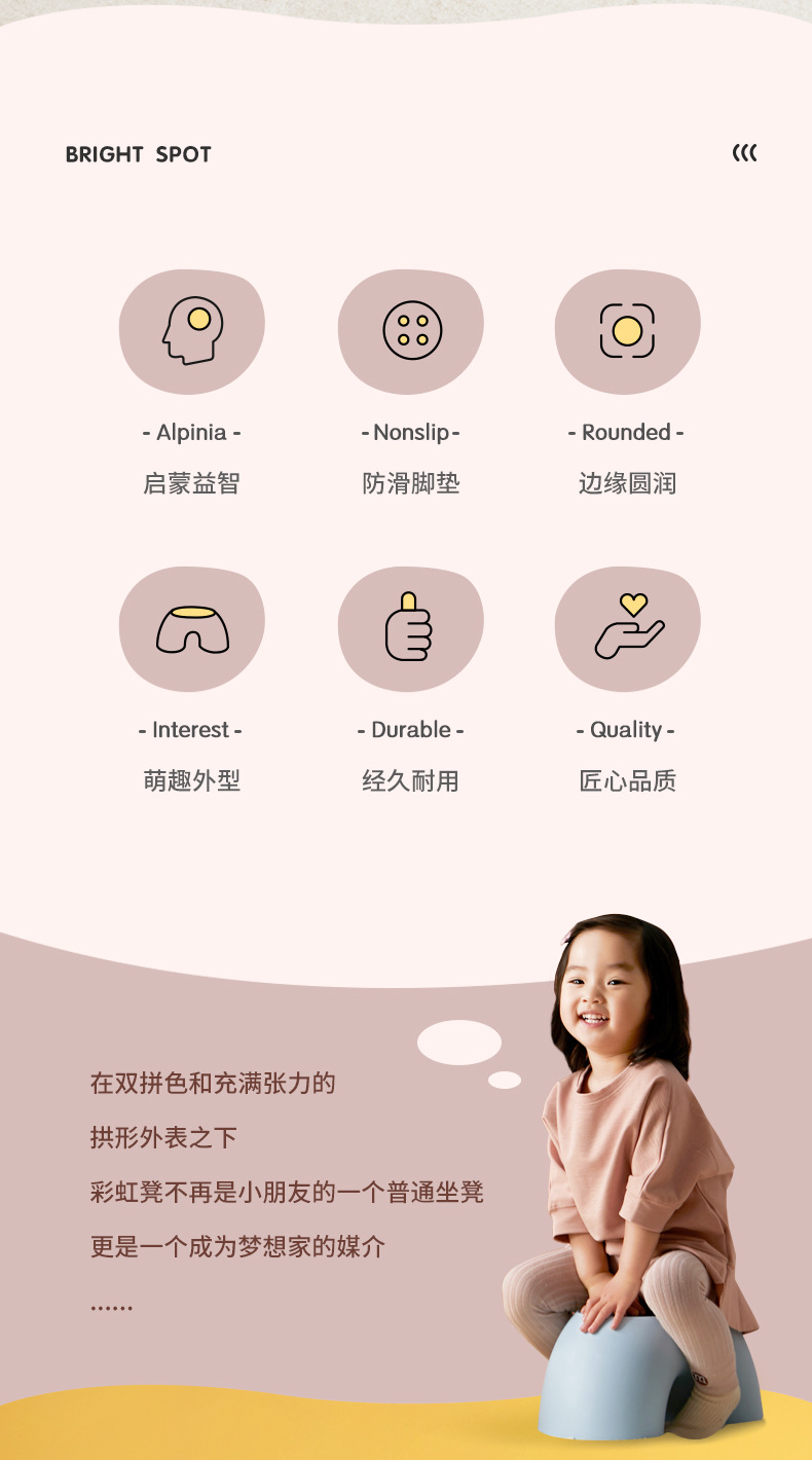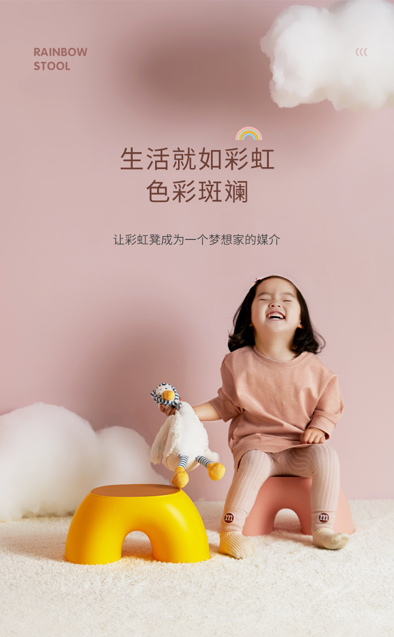 【坐享童趣,创意彩虹凳子】彩虹凳简约小板凳家居圆润舒适凳子,加宽加大承重力强,可坐可踩防滑耐用换鞋凳颜值实用好物自由叠加收纳不占空间QQ