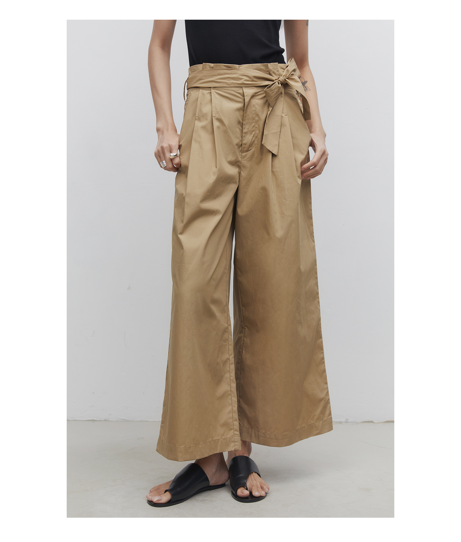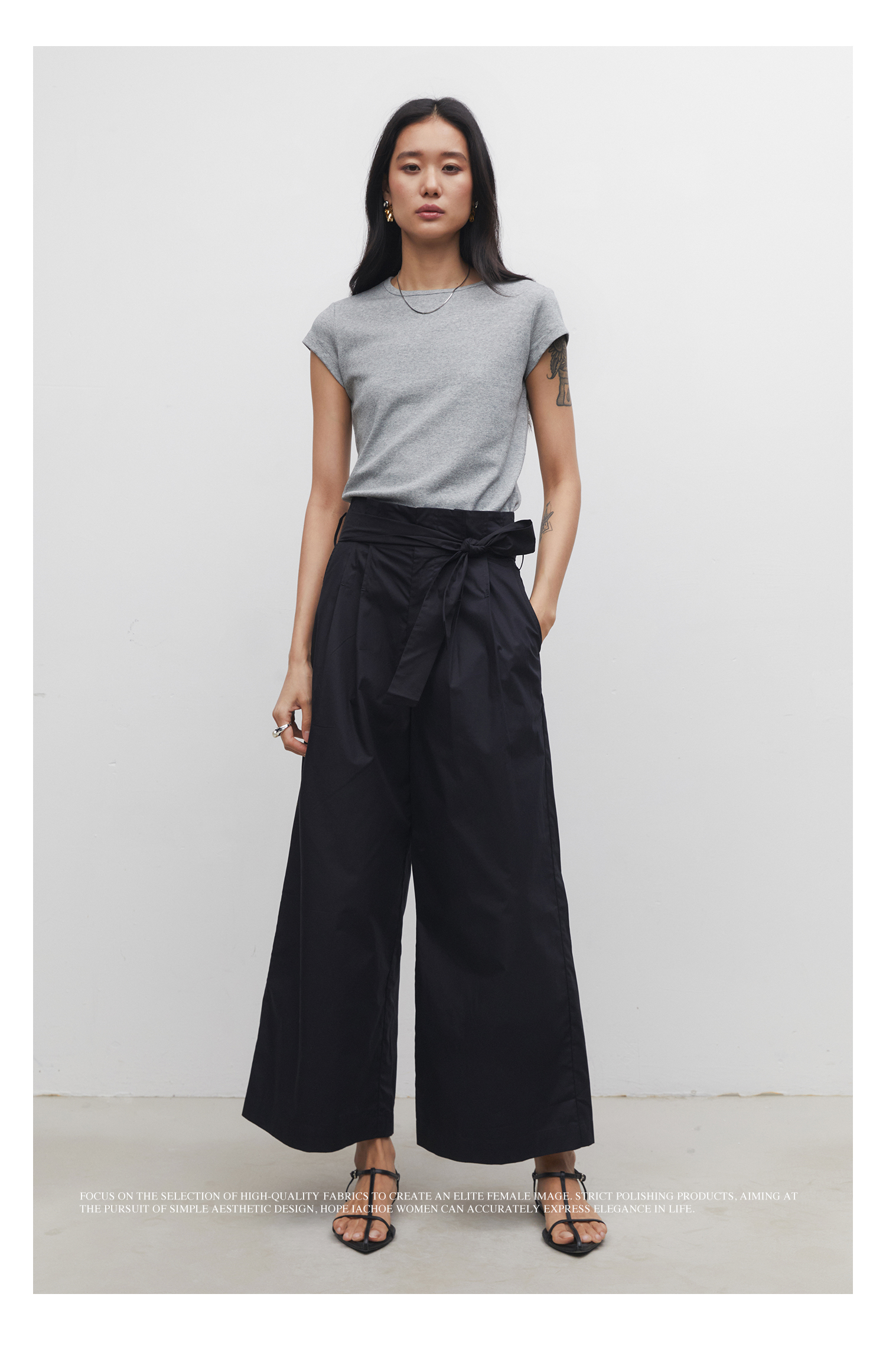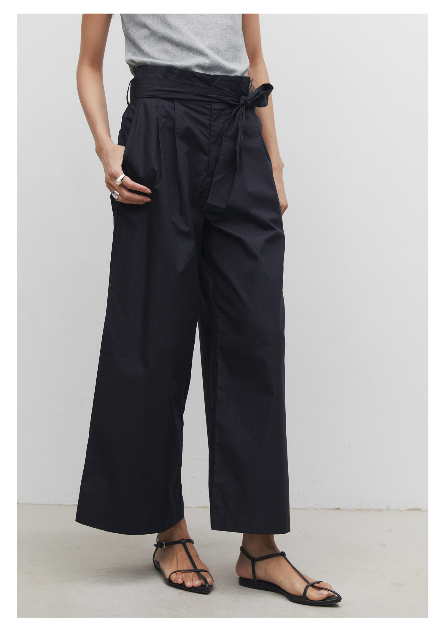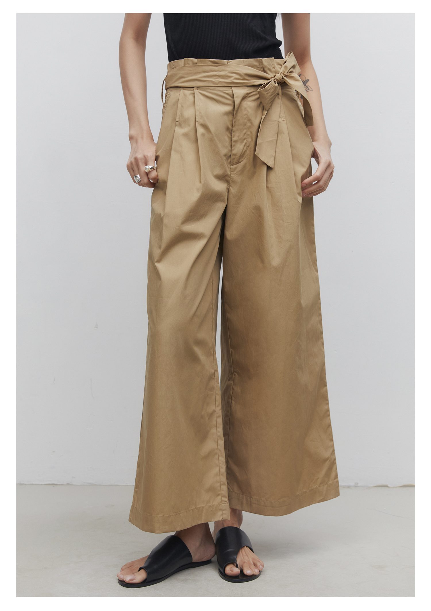 棉仓3531518009-山本风九分阔腿裤腰带款收胯 夏季长绒棉高腰薄款休闲裤