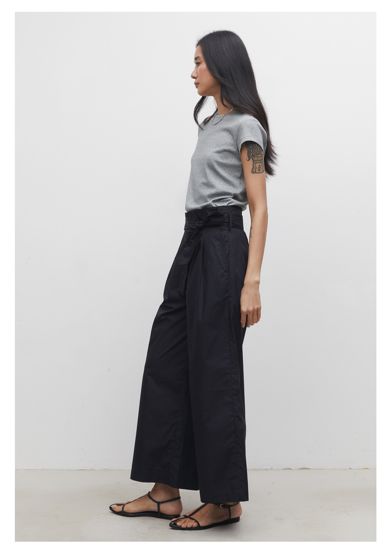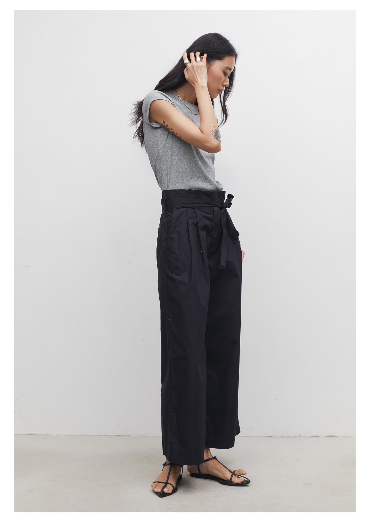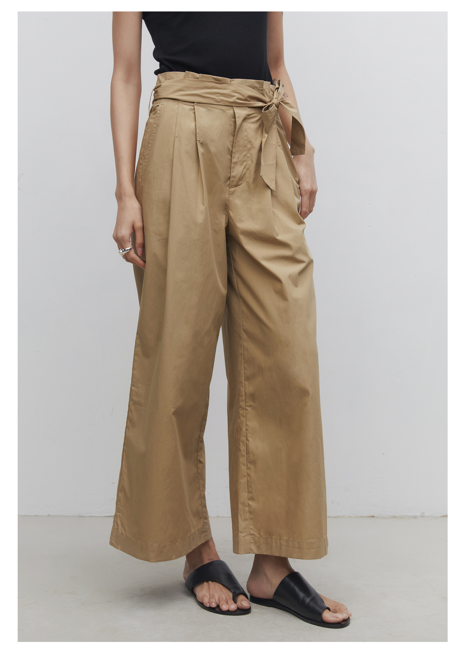 棉仓3531518009-山本风九分阔腿裤腰带款收胯 夏季长绒棉高腰薄款休闲裤
