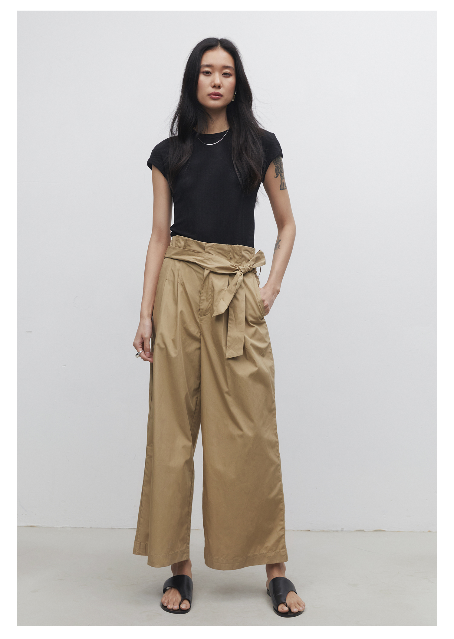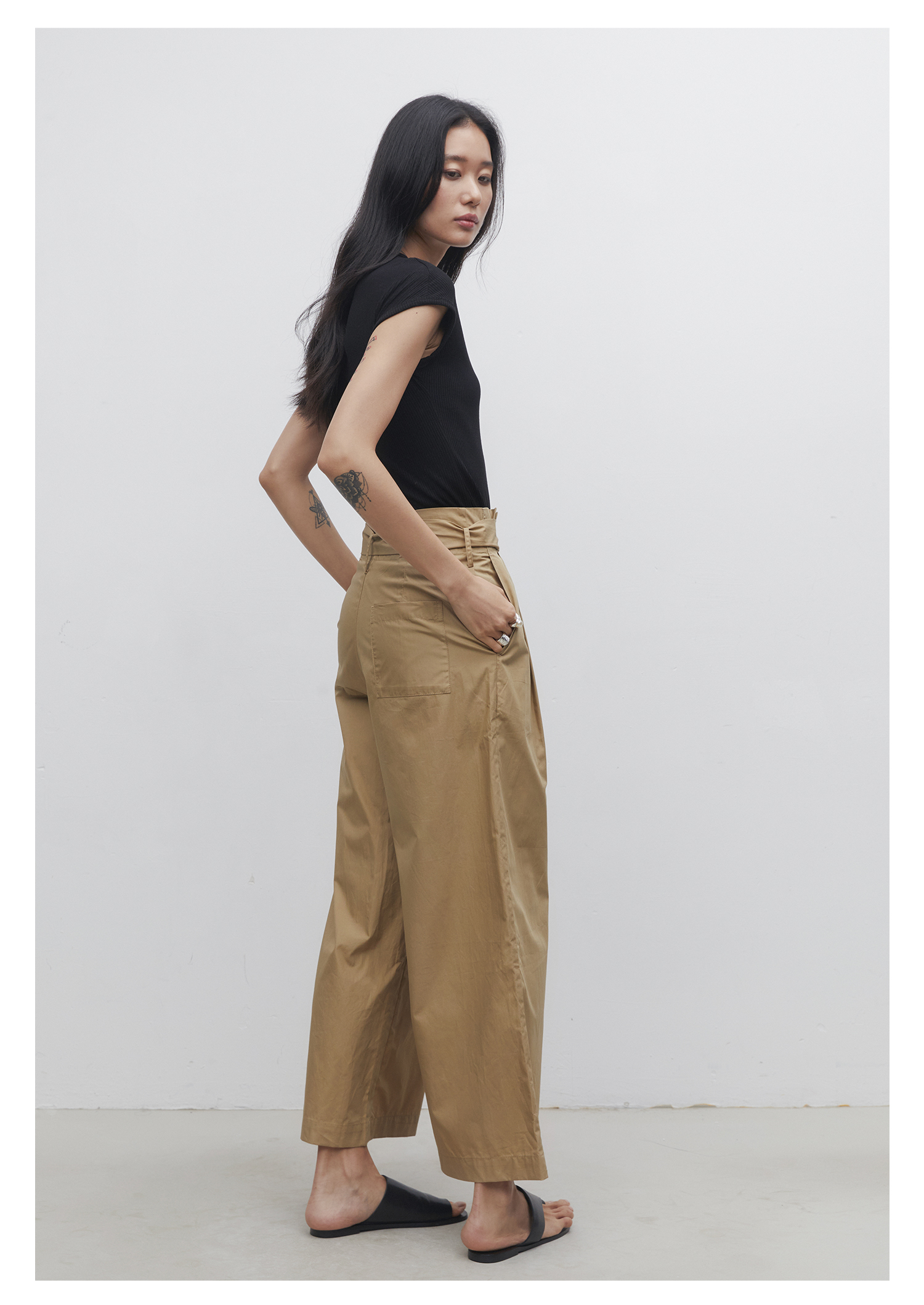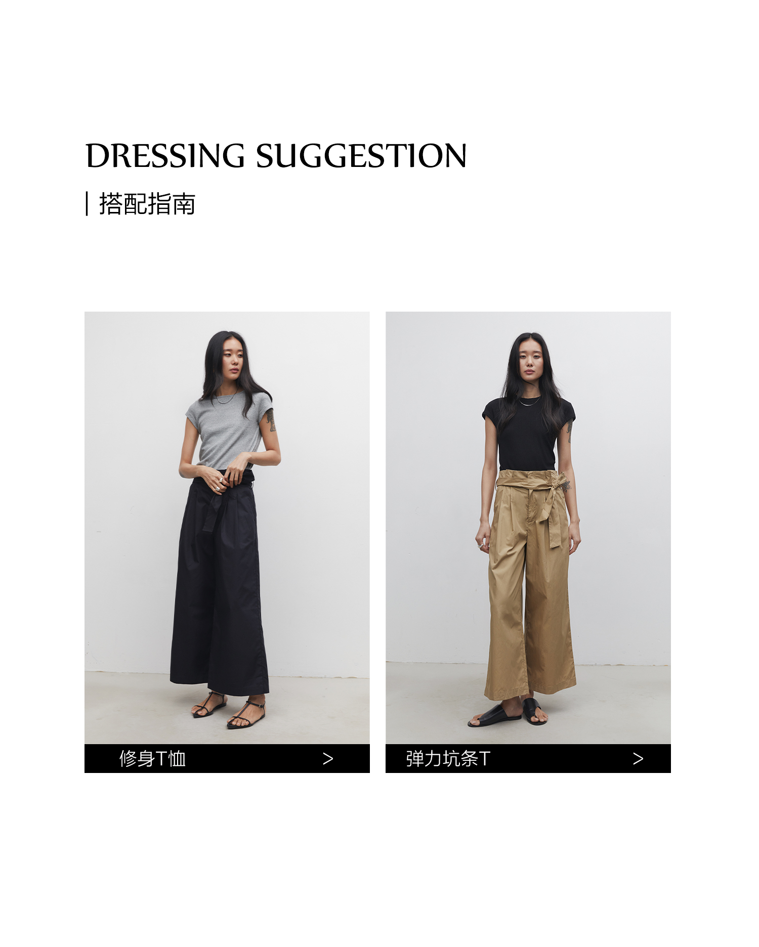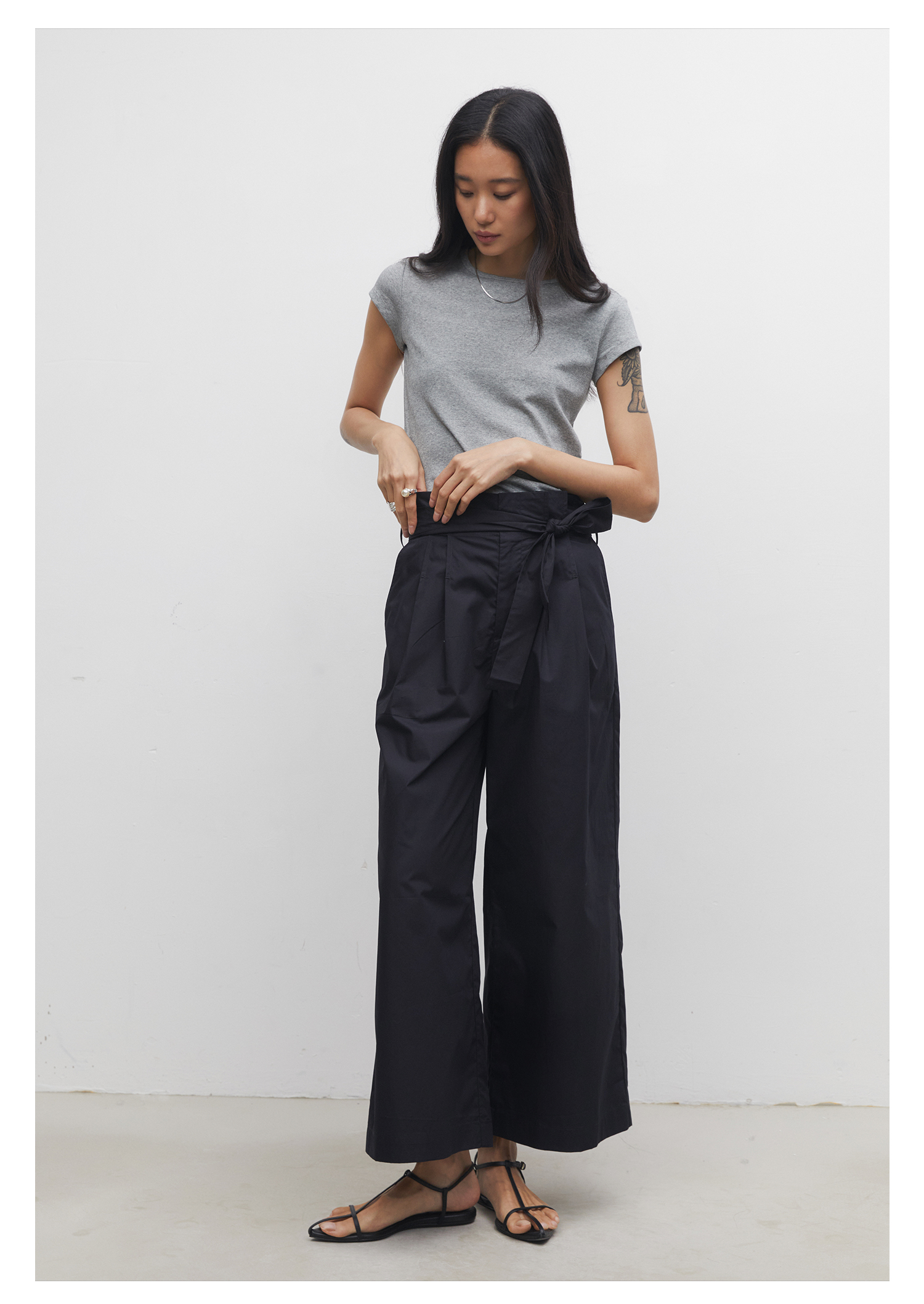 棉仓3531518009-山本风九分阔腿裤腰带款收胯 夏季长绒棉高腰薄款休闲裤