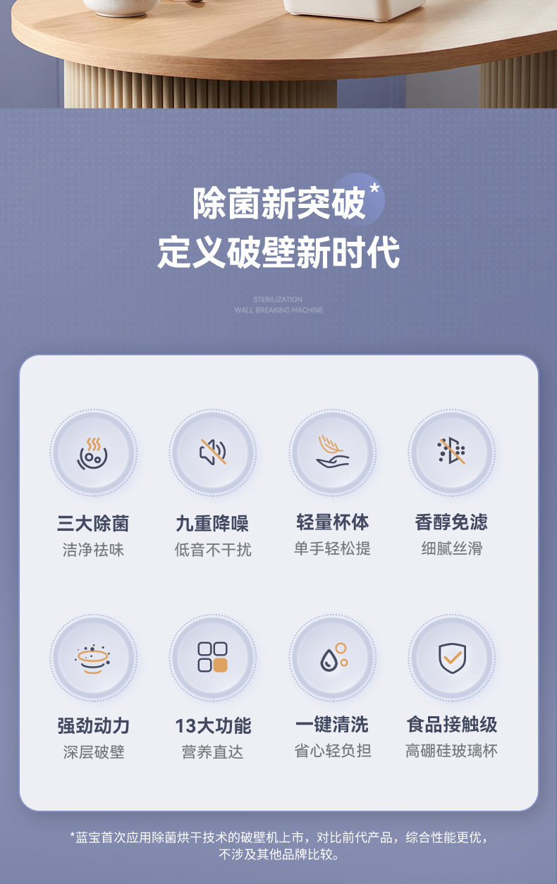 蓝宝除菌烘干破壁机豆浆机BP-PB10