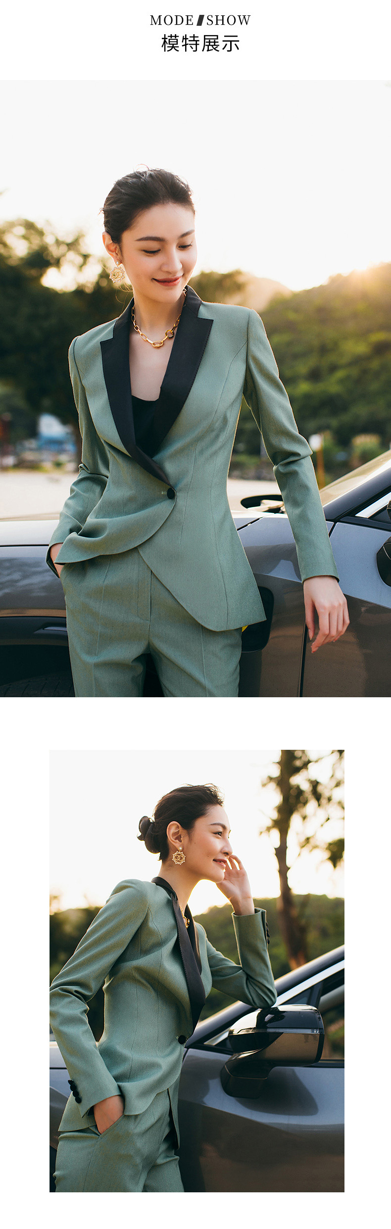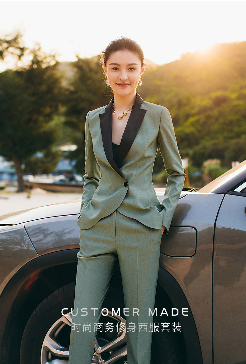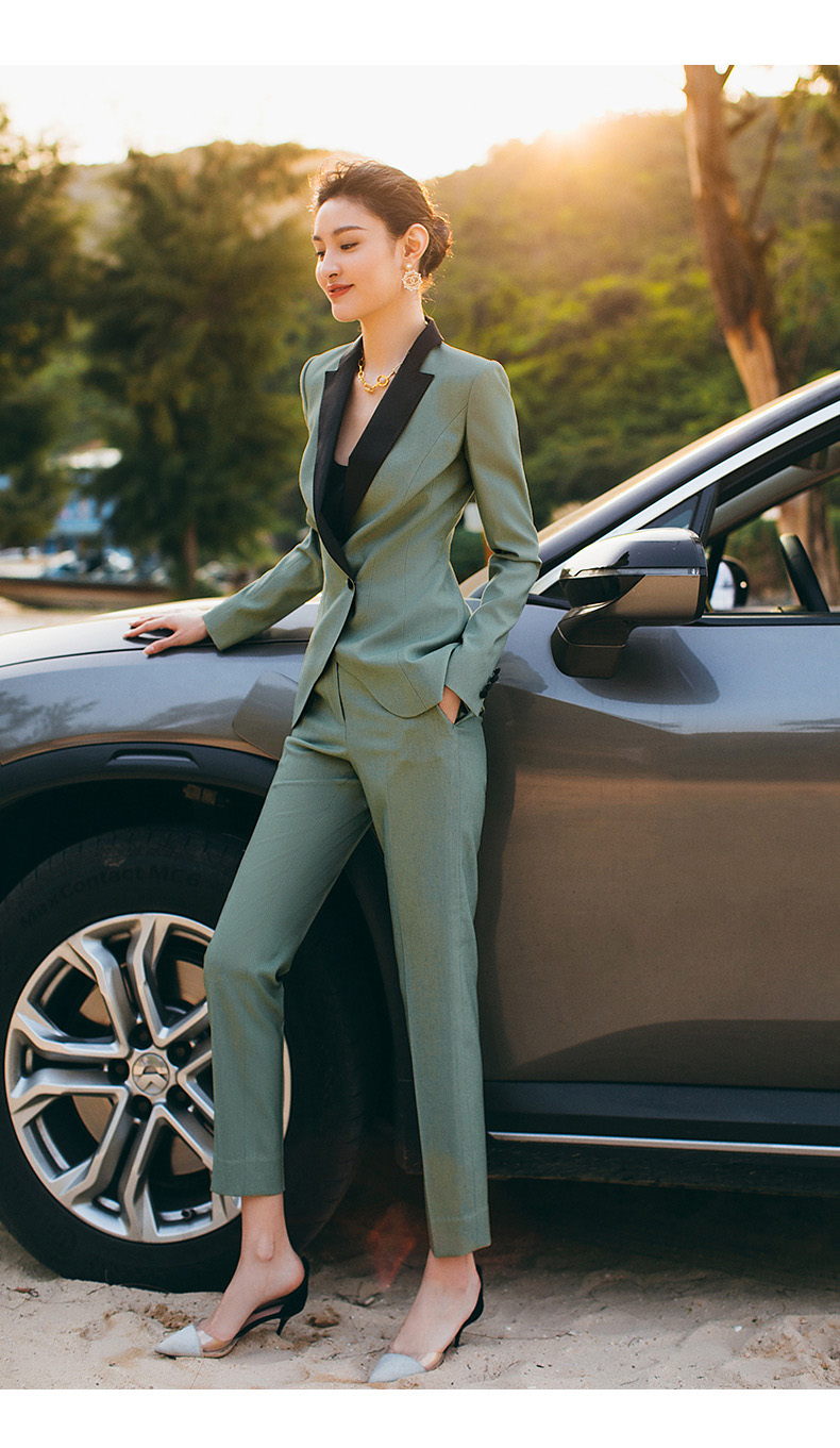 秋冬高端职业装气质女神范套装售楼部经理工作服绿色西装套装女OL