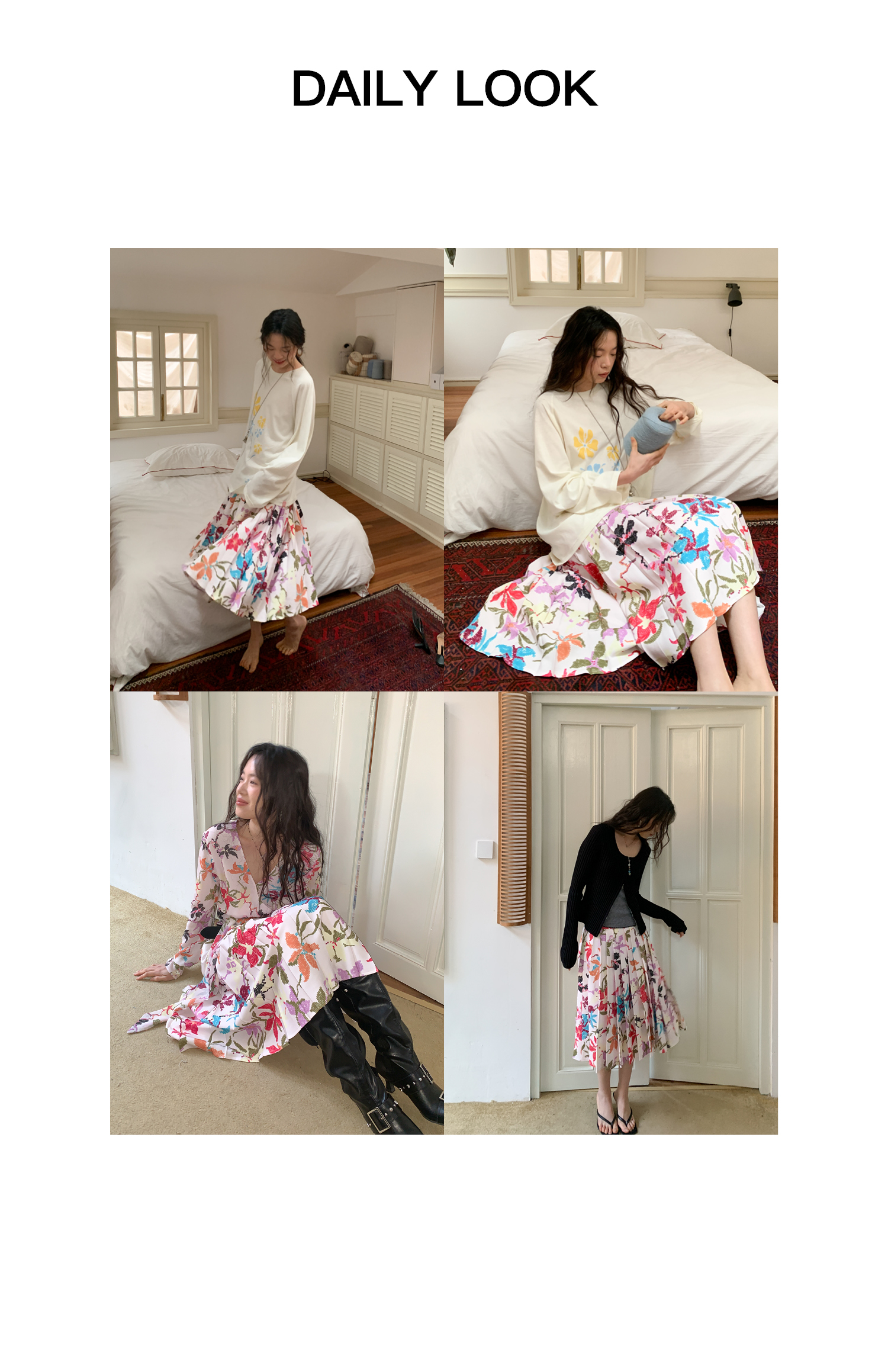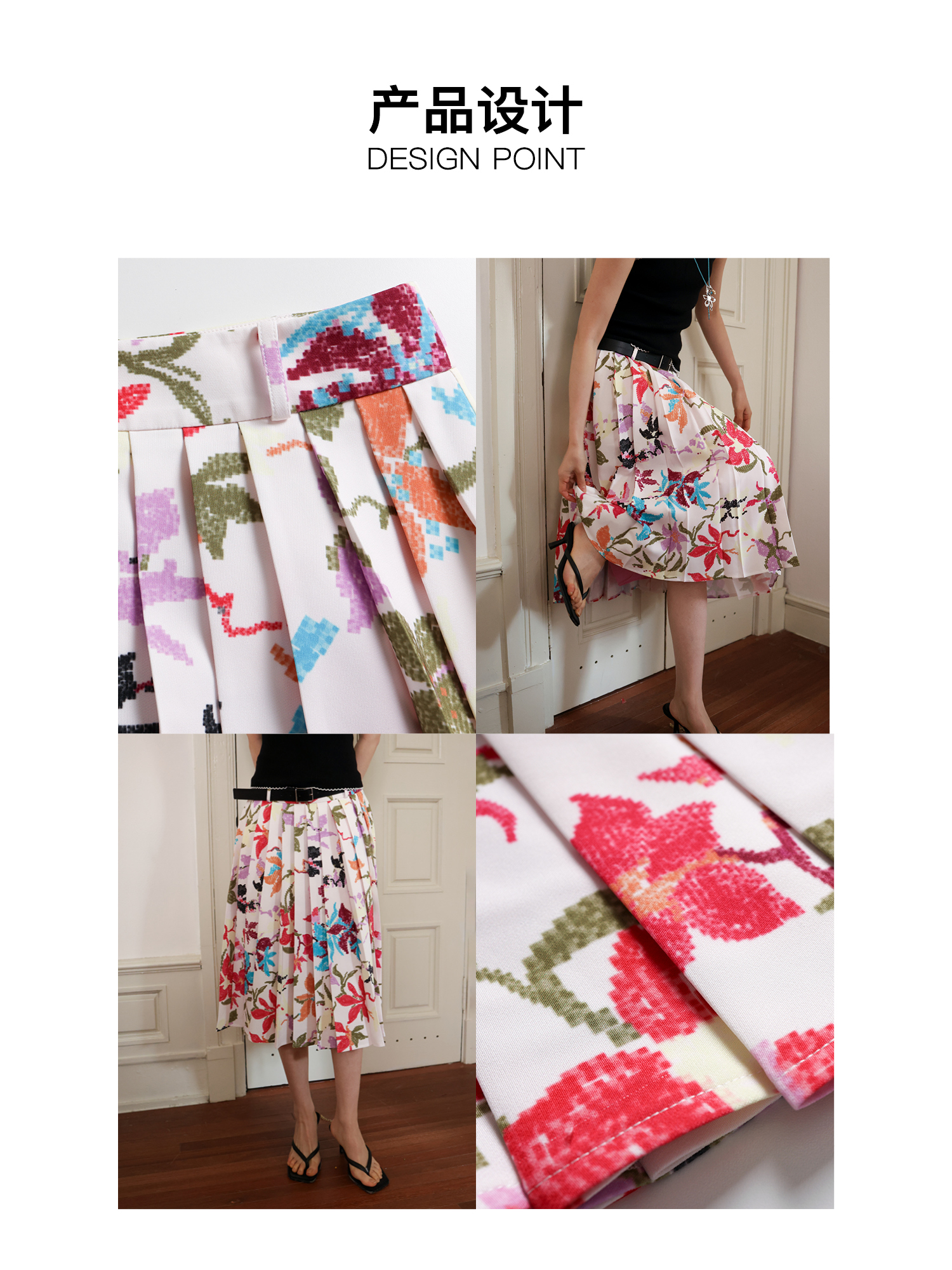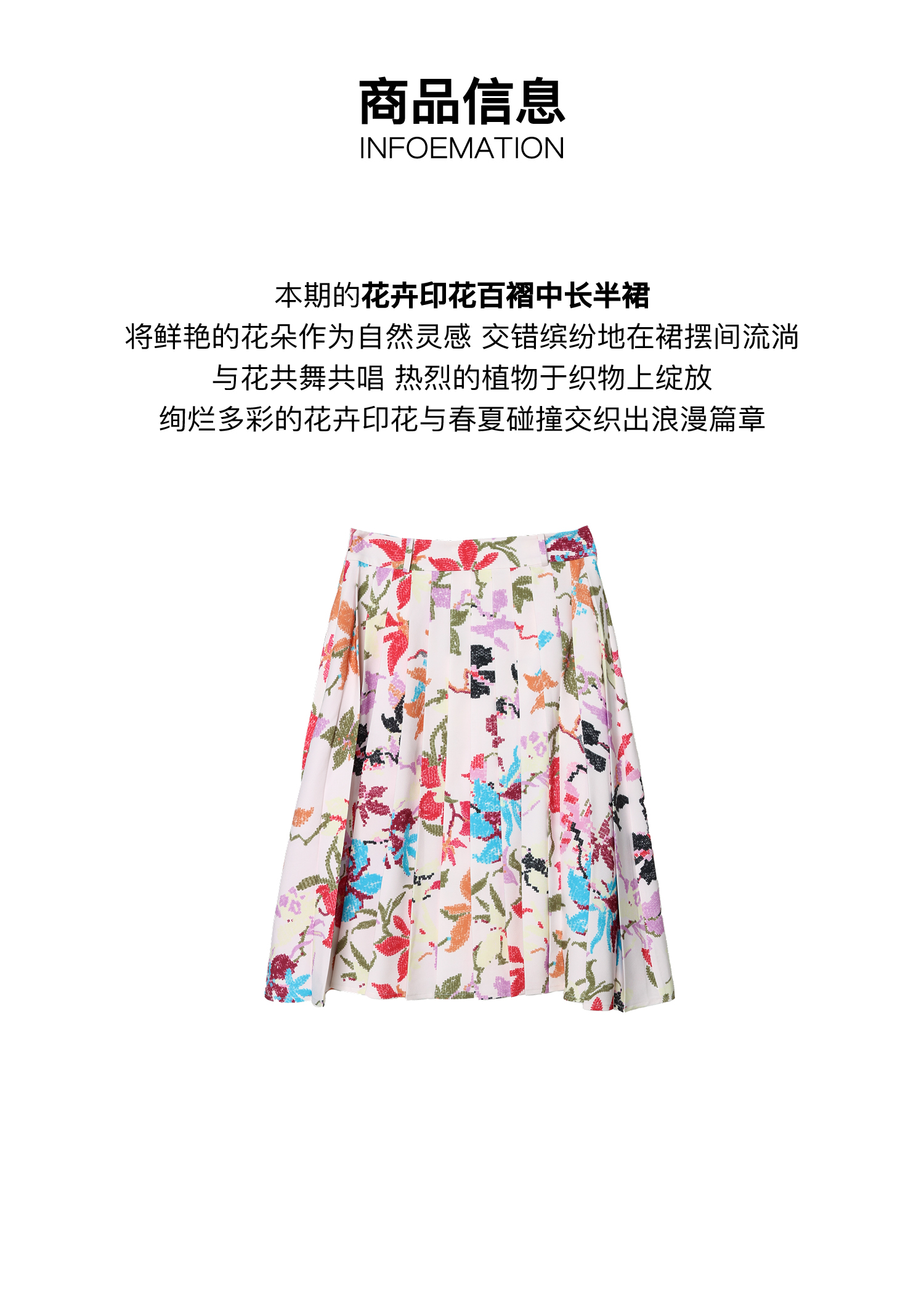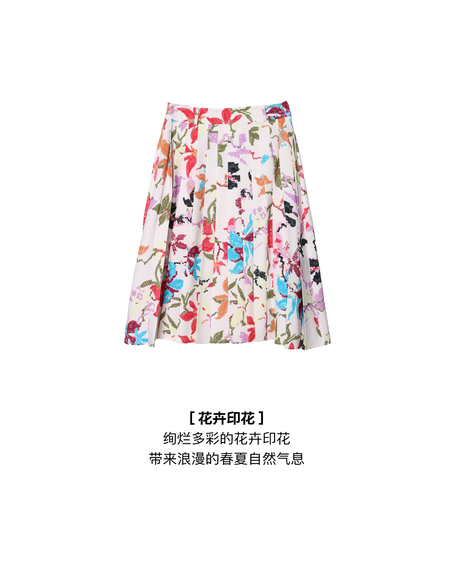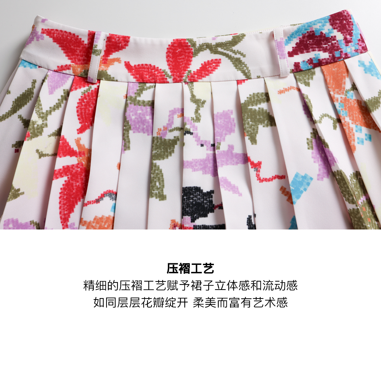 素舶 花影缤纷百搭显瘦百褶印花A字半身裙SUPERSCAPE