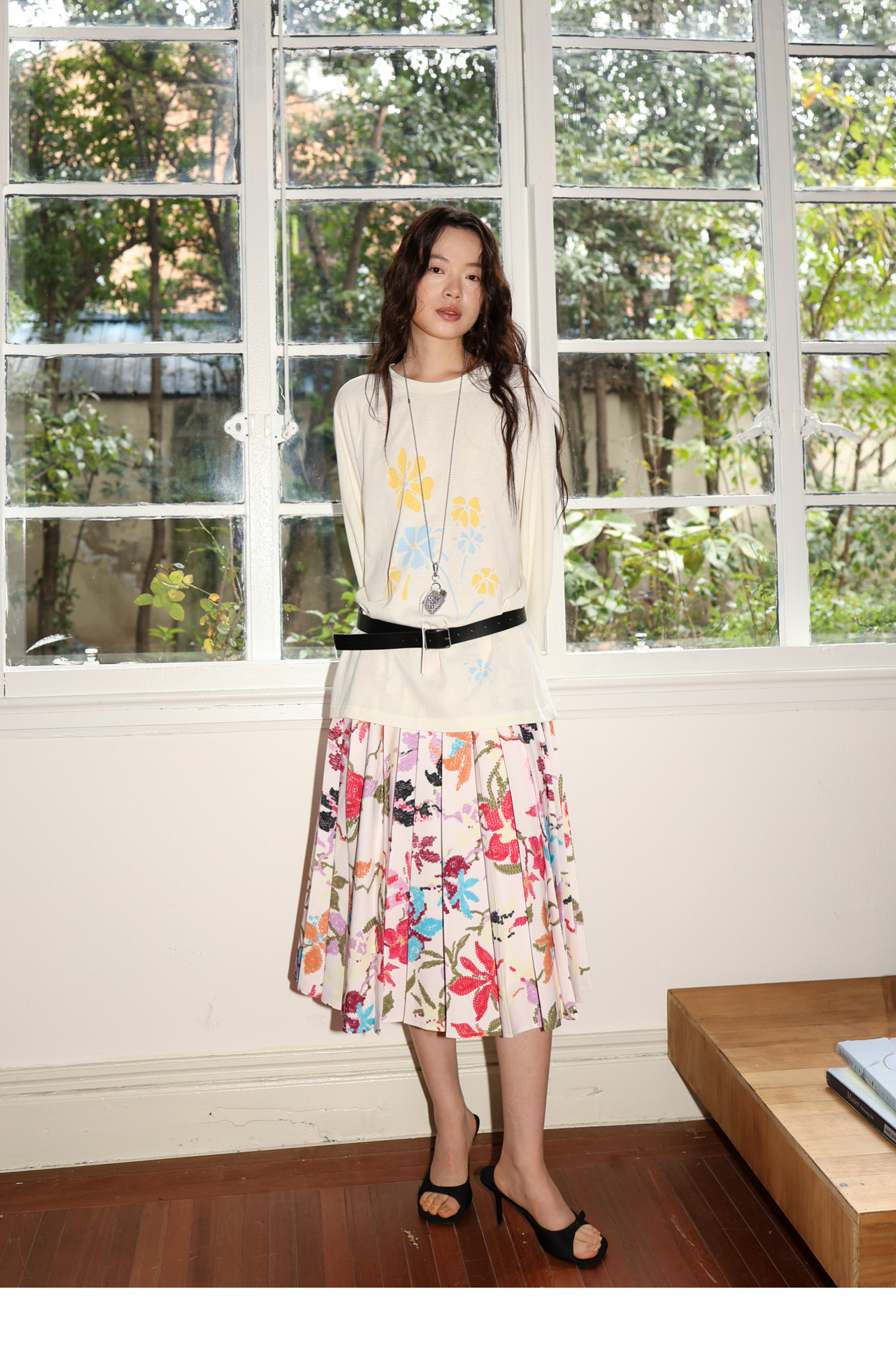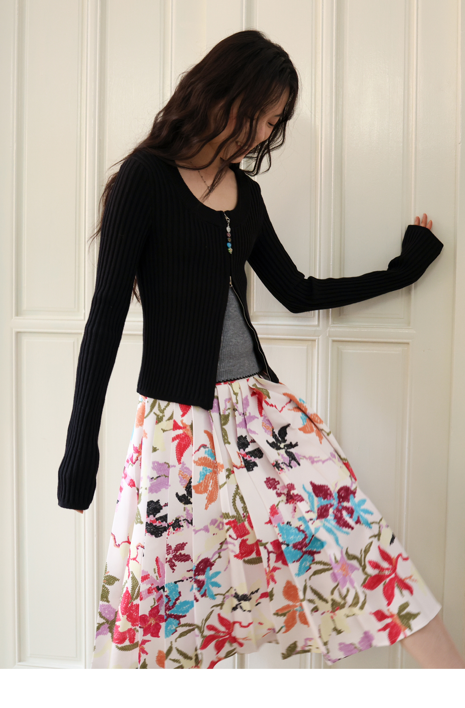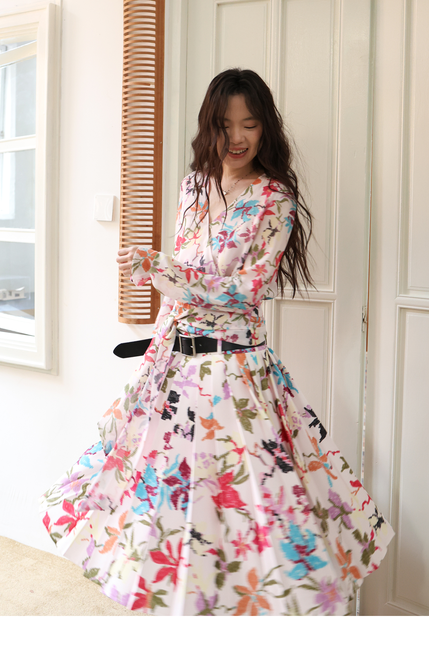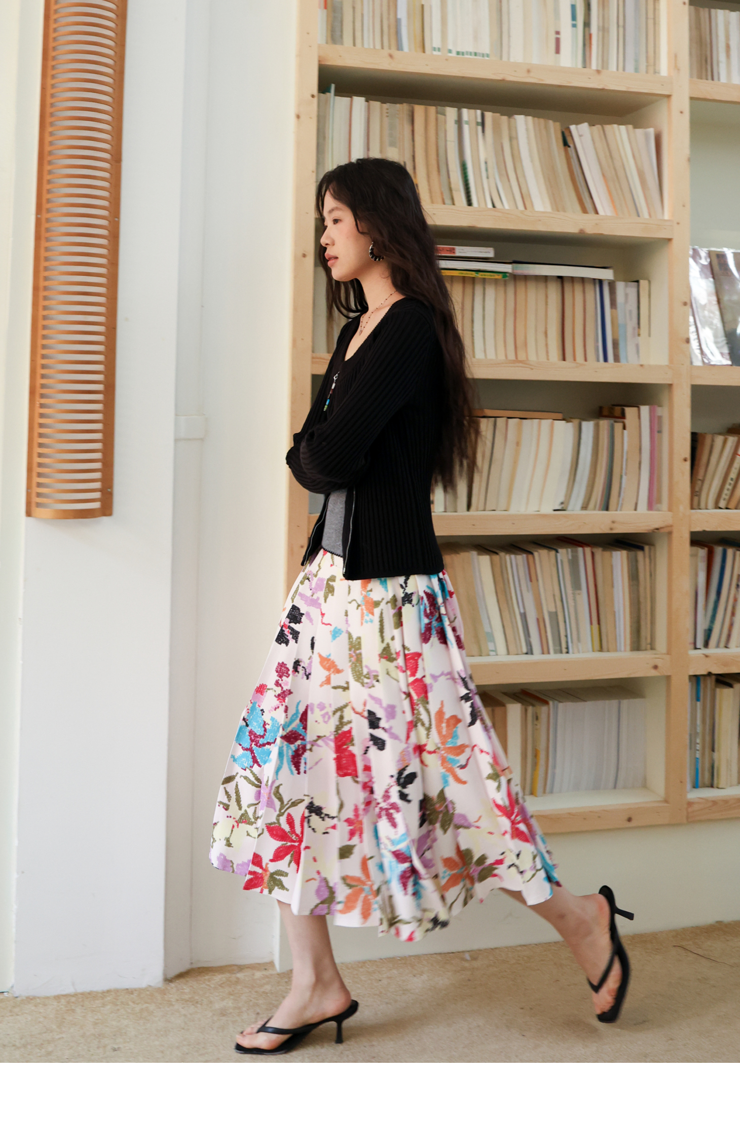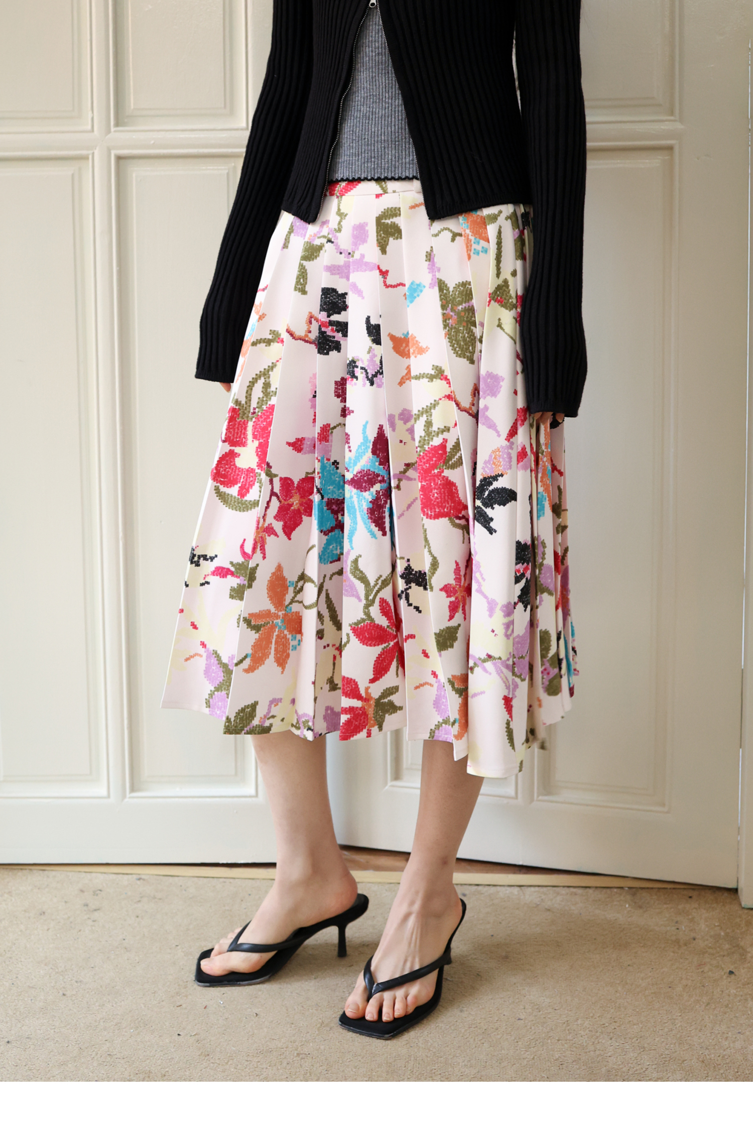 素舶 花影缤纷百搭显瘦百褶印花A字半身裙SUPERSCAPE